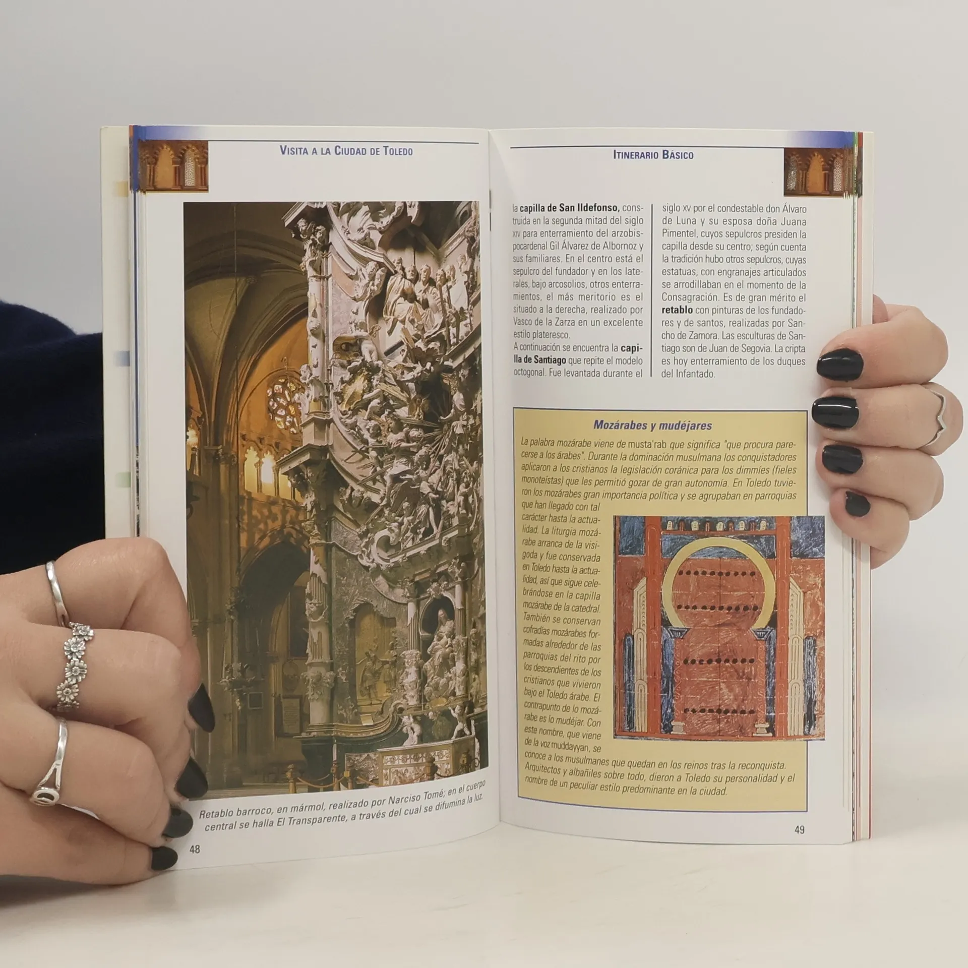 " Una guía práctica y totalmente actualizada, ideal para realizar un corto viaje a Toledo. La guía está dividida en cuatro apartados. En el primero, titulado Diez Indispensables, se propone una selección de los lugares, curiosidades y tradiciones de Toledo y su provincia que no hay que La Judería, El Greco y otros maestros, El Alcázar, Por la senda del Tajo, La gran fiesta del Corpus, El Toboso… El segundo apartado, Visita a la ciudad de Toledo, consta de cinco itinerarios urbanos a seguir para conocer a fondo la el itinerario básico, el itinerario complementario, Murallas, puertas y puentes, Zona sur y Exteriores de la ciudad. En todos ellos se proporciona información detallada de los lugares con mayor interés. También incluye un plano de la ciudad con los monumentos más importantes destacados. El siguiente apartado, Excursiones por Toledo, propone cuatro recorridos por los lugares más emblemáticos de la De Toledo a la Mancha por los Montes, La Mancha Alta y la Sagra, Centro de la provincia y Comarca de Talavera. Un útil mapa de carreteras al comienzo de este capítulo facilita la planificación de los desplazamientos. Finalmente, se incluye una amplia selección de restaurantes, alojamientos, direcciones de museos y monumentos, así como una exhaustiva información práctica para moverse por la zona. "