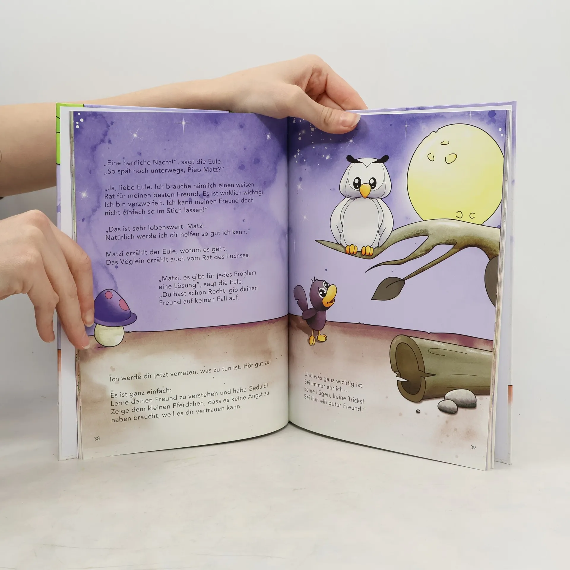 Hallo zusammen! Mein Name ist Matz – Piep Matz! Aber sagt ruhig Matzi zu mir, alle meine Freunde tun das. Auch Sternchen. Ihr fragt euch jetzt ganz bestimmt, wer Sternchen ist. Sternchen ist mein bester Freund und – ein sehr ängstliches, einsames kleines Pferdchen. Manche Tiere können einfach nicht verstehen, warum Sternchen solche Angst hat. Deshalb wollen sie nichts mit ihm zu tun haben. Doch eines Tages findet das kleine Pferdchen Freunde, mit deren Hilfe es von Tag zu Tag mutiger und glücklicher wird. Es erfährt, wie wichtig es ist, gute Freunde zu haben. Und ich erfahre, wie wichtig es ist, ein guter Freund zu sein.