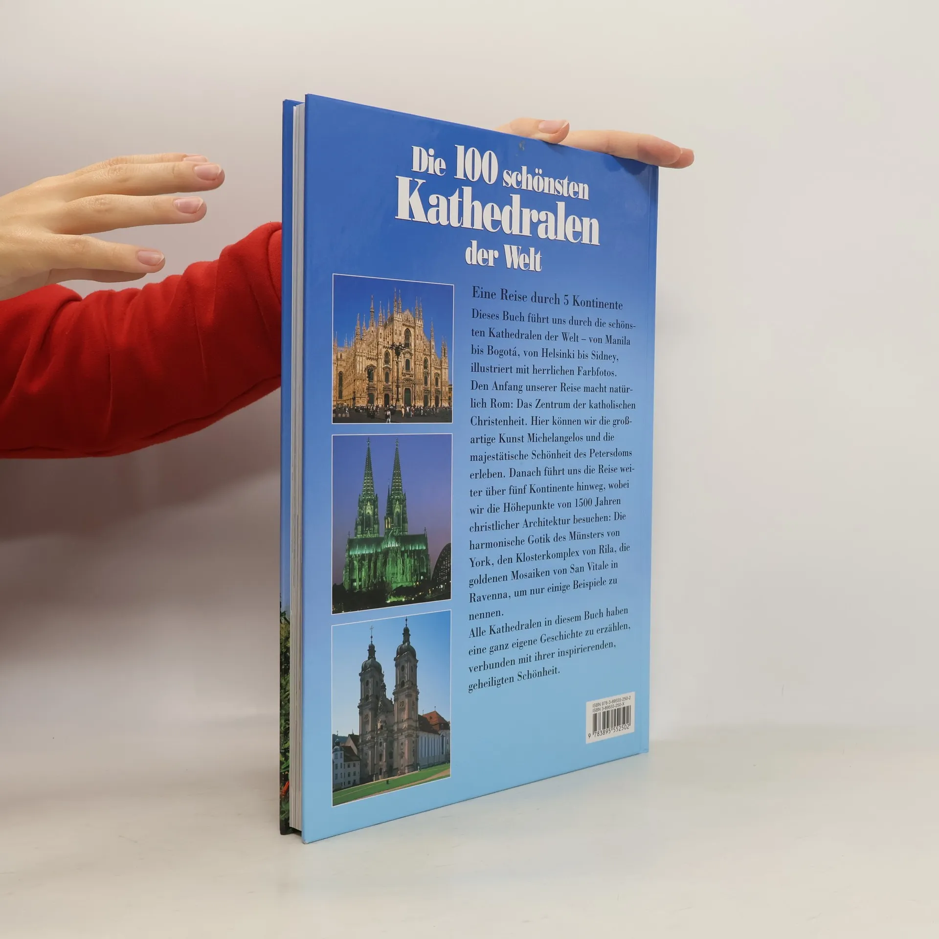 100 Kirchen und Kathedralen aus aller Welt werden, nach Ländern geordnet, auf je einer Doppelseite vorgestellt, mit mehreren Abbildungen und einem nicht zu knappem Abriss zu Architektur und Geschichte, Hinweisen zu Anreise, Öffnungszeiten und auf besondere Sehenswürdigkeiten. 18 der 100 Kirchen stehen außerhalb Europas, der Band zeigt außerdem viele Kirchen Ost und Südosteuropas, die im DuMontBand "Kirchen und Klöster in Europa" (BA 4/03) fehlen. Halb so teuer wie dieser und wie "Die großen Kathedralen, Klöster und Pilgerstätten Europas" (BA 4/03). Großformatiger Schauband, überall einsetzbar. (1)