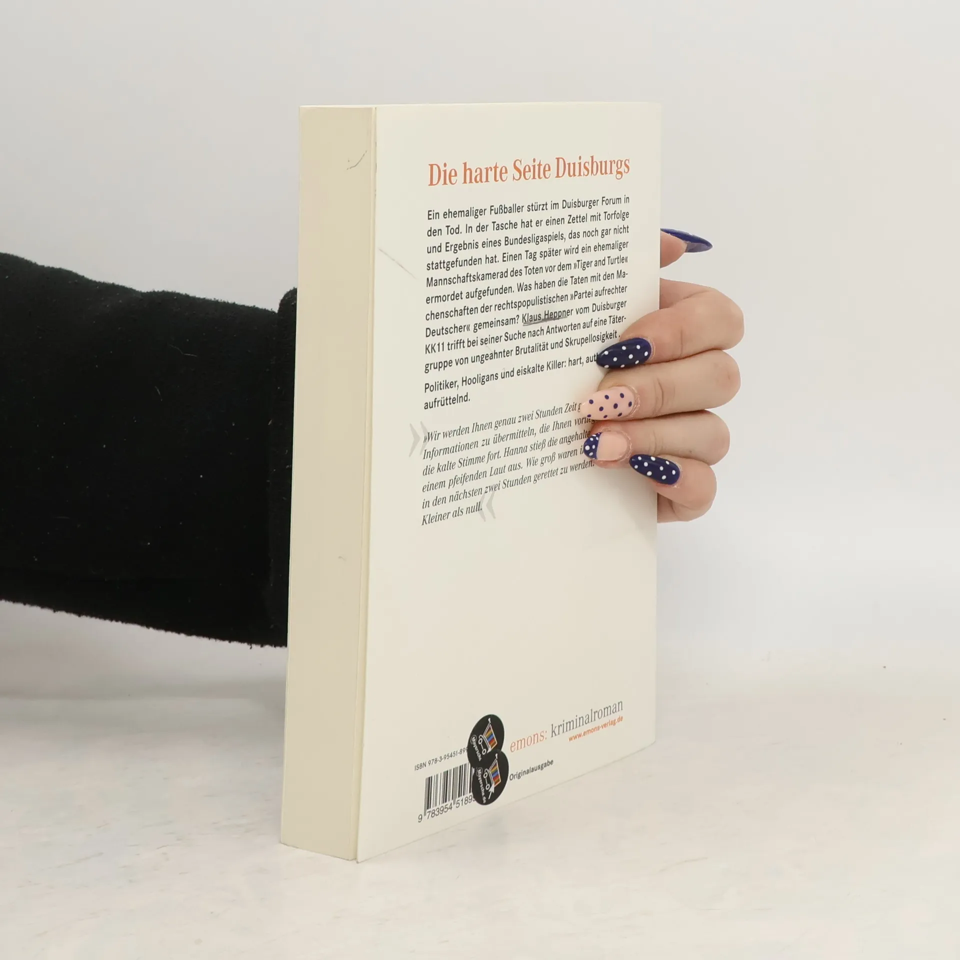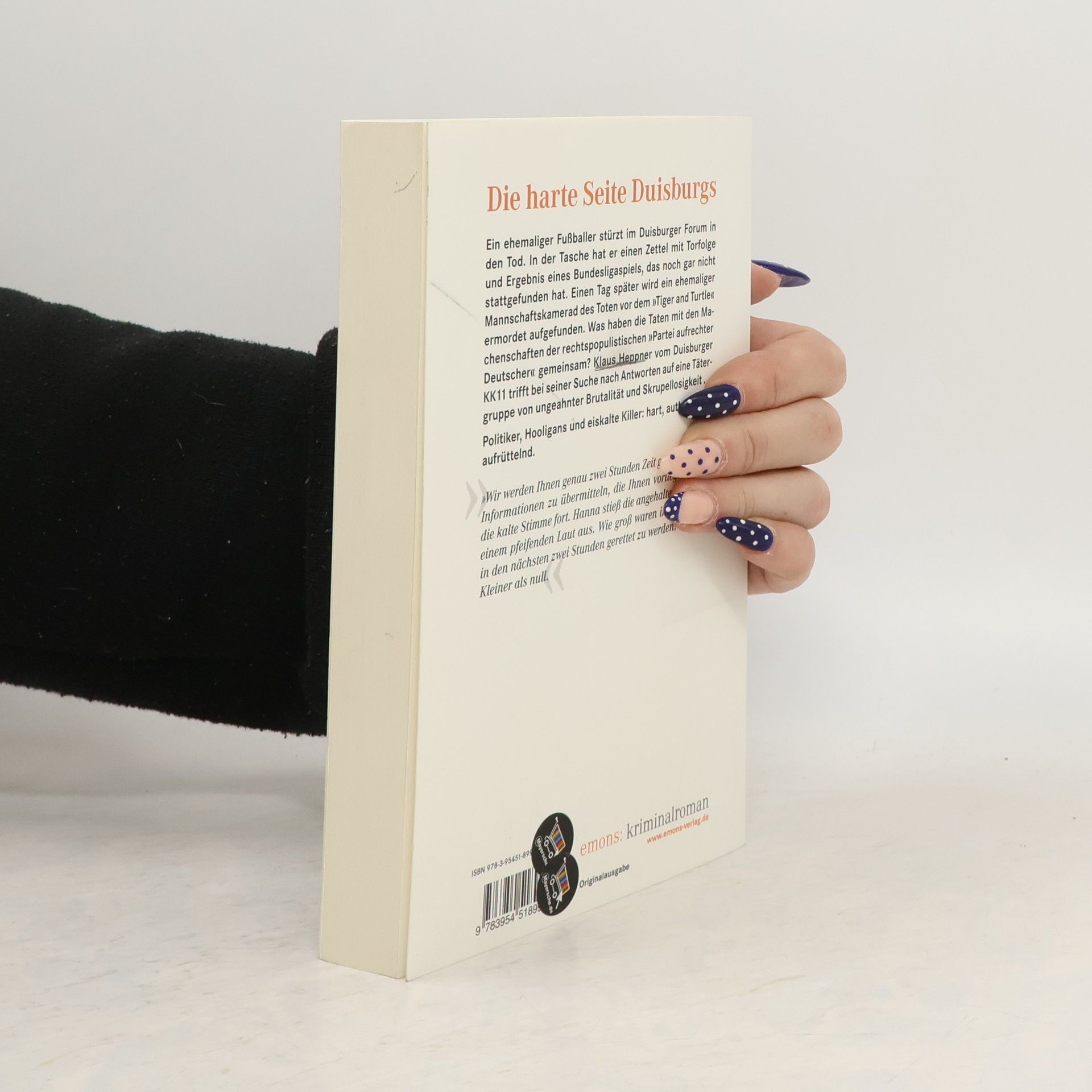 Ein ehemaliger Fußballer stürzt im Duisburger Forum in den Tod. In der Tasche hat er einen Zettel mit Torfolge und Ergebnis eines Bundesligaspiels, das noch gar nicht stattgefunden hat. Einen Tag später wird ein ehemaliger Mannschaftskamerad des Toten vor dem 'Tiger and Turtle' tot aufgefunden, nachdem er Details über die neu gegründete 'Partei aufrechter Deutscher' an die Polizei weitergegeben hatte. Hängen die beiden Todesfälle zusammen? Klaus Heppner vom Duisburger KK 11 trifft bei seiner Suche nach Antworten auf eine Tätergruppe von ungeahnter Brutalität und Skrupellosigkeit.
