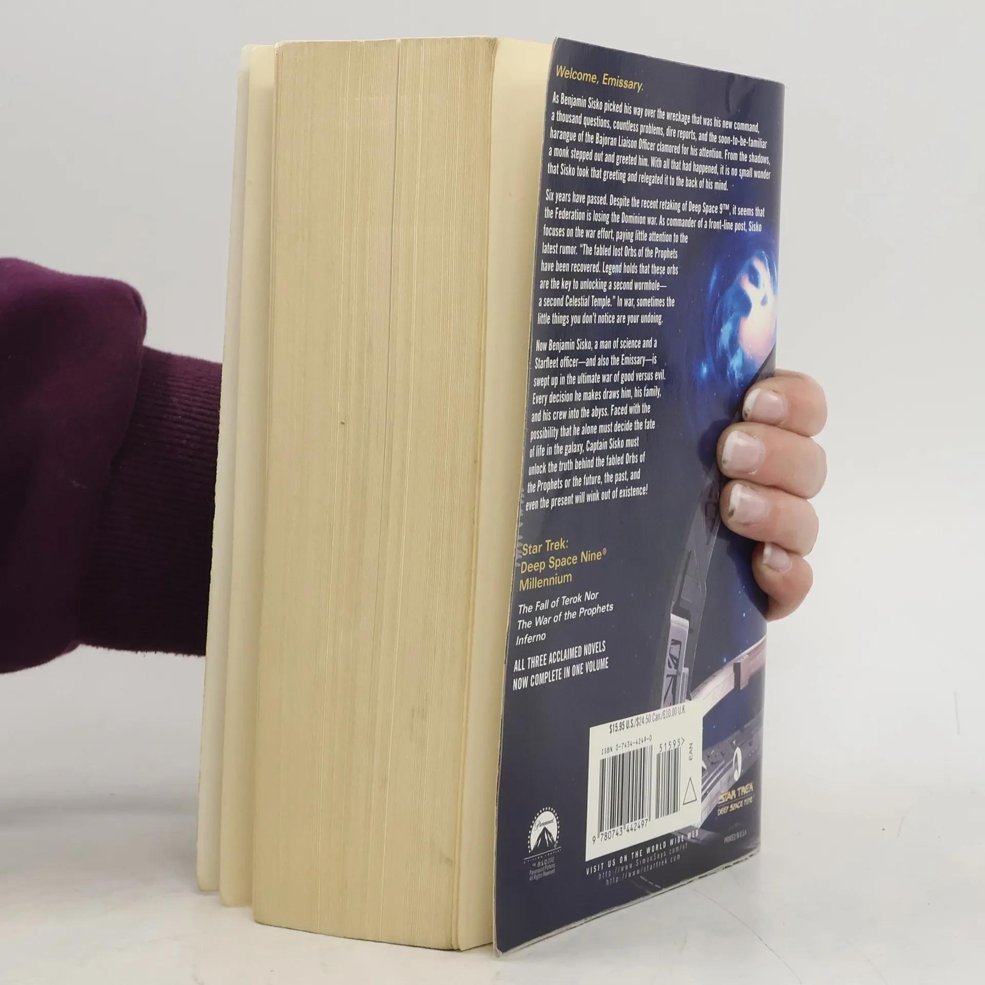 "Welcome, Emissary."As Benjamin Sisko picked his way over the wreckage that was his new command, a thousand questions, countless problems, dire reports, and the soon-to-be-familiar harangue of the Bajoran Liaison Officer clamored for his attention. From the shadows, a monk stepped out and greeted him. With all that had happened, it is no small wonder that Sisko took that greeting and relegated it to the back of his mind.Six years have passed. Despite the recent retaking of Deep Space 9(TM), it seems that the Federation is losing the Dominion war. As commander of a front-line post, Sisko focuses on the war effort, paying little attention to the latest rumor. "The fabled lost Orbs of the Prophets have been recovered. Legend holds that these orbs are the key to unlocking a second wormhole -- a second Celestial Temple." In war, sometimes the little things you don't notice are your undoing.Now Benjamin Sisko, a man of science and a Starfleet officer -- and also the Emissary -- is swept up in the ultimate war of good versus evil. Every decision he makes draws him, his family, and his crew into the abyss. Faced with the possibility that he alone must decide the fate of life in the galaxy, Captain Sisko must unlock the truth behind the fabled Orbs of the Prophets or the future, the past, and even the present will wink out of existence