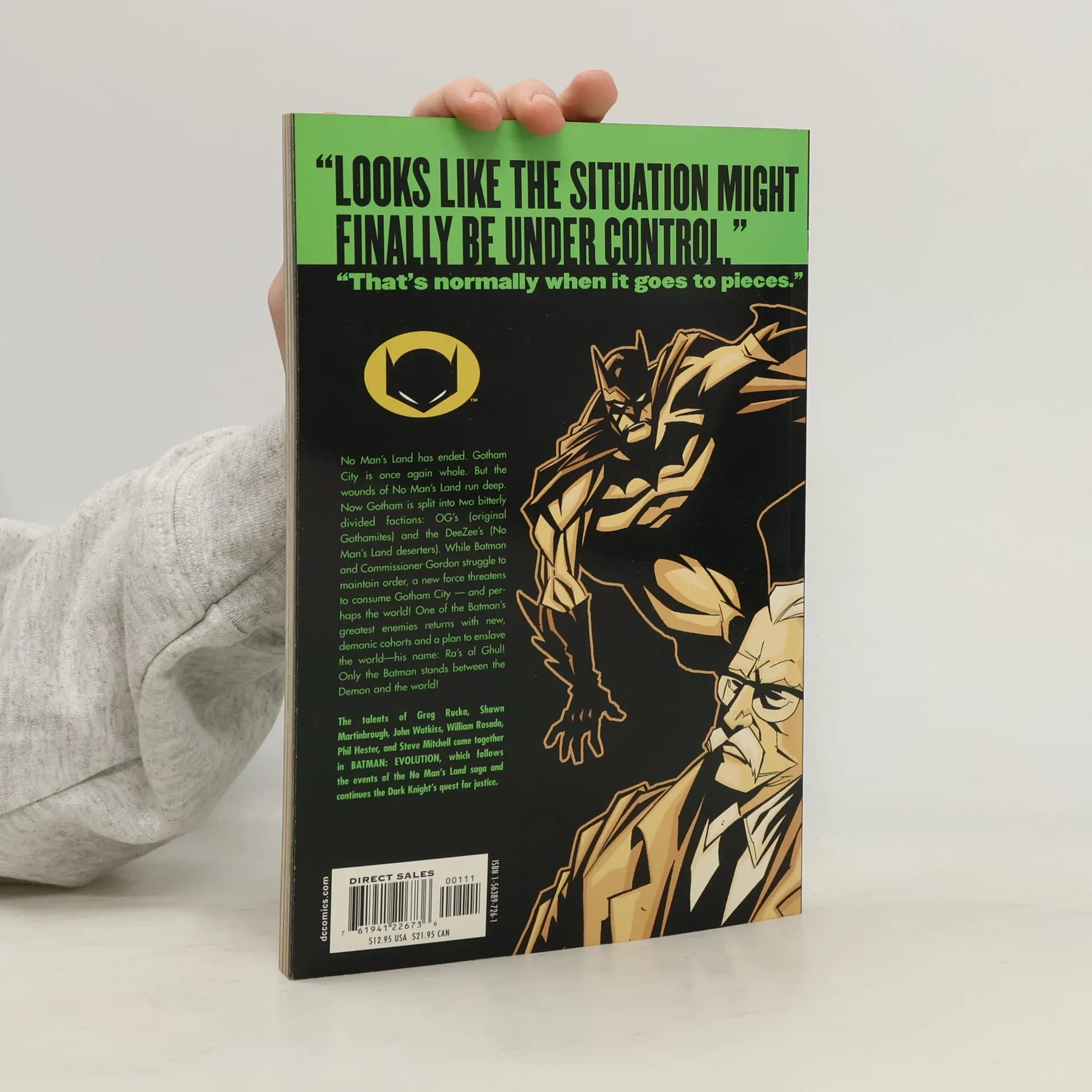 Picking up where BATMAN: NO MAN'S LAND VOLUME 5 left off, this trade paperback begins the rebirth of Gotham City. Once again sanctioned by the government, Gotham finds itself on the brink of a civil war between the OG's, those that stayed in Gotham when it was declared off limits, and the DeeZee's, those that left and have now returned. As Batman, Nightwing, Robin, and Batgirl try to prevent a war on the streets from breaking out, the Dark Knight's greatest nemesis, Ra's al Ghul, enacts a deadly plot that will first consume the city and then the world.Collects Detective Comics Vol. 1 #742 to #750.