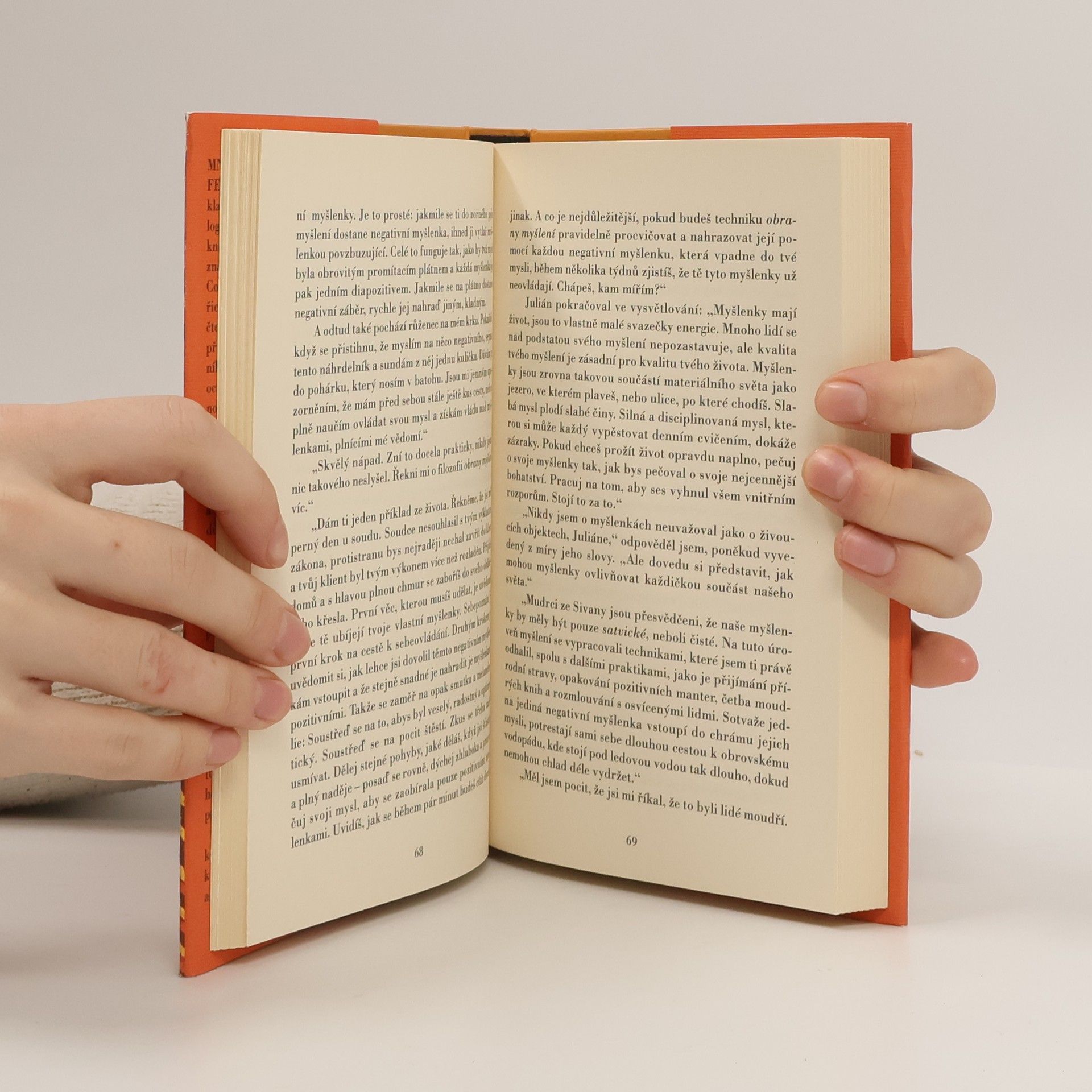 Kniha patřící mezi nejznámější klasická díla s duchovní a psychologickou tematikou. Tato „úchvatná knížka, která přináší potěšení i poznání“, jak se o ní vyjádřil Paulo Coelho, byla přeložena do třiačtyřiceti jazyků a inspiruje miliony čtenářů na celém světě. Vypráví příběh o slavném a bohatém právníkovi Julianu Mantlovi, jenž se ocitl na pokraji smrti, když jednoho dne v přeplněné soudní síni utrpěl infarkt. Jeho fyzický kolaps je provázen krizí duchovní, která jej donutí hluboce se zamyslet nad neutěšeným stavem svého života a vydat se hledat odpovědi na nejdůležitější otázky lidského bytí. V naději, že nalezne štěstí a splnění svých snů, vypravuje se Julián Mantle na putování do nedostupných indických končin obydlených prastarou východní kulturou. Zde se postupně seznamuje se starobylou moudrostí a filozofií, která jej naučí objevovat, kultivovat a ovládat skrytý potenciál vlastního vědomí, těla i ducha. Někdejší slavný advokát, který se postupně oprošťuje od svého dosavadního životního stylu, prochází hlubokou osobní proměnou. Příběh Juliána Mantla čtenáře krok za krokem provází na cestě k sebepoznání a ke smysluplnému a vyrovnanému životu.