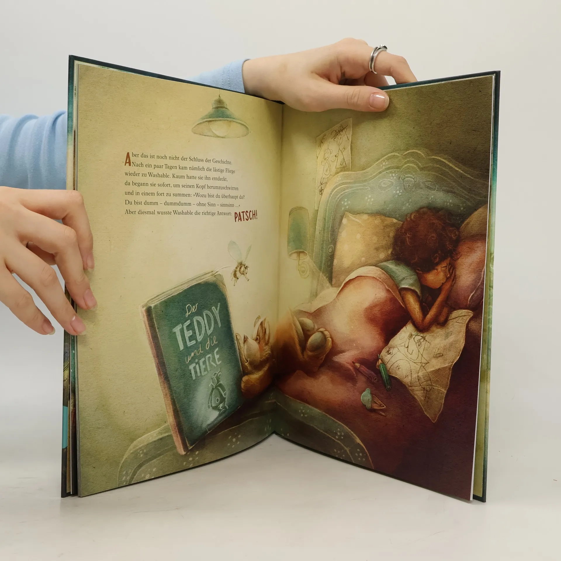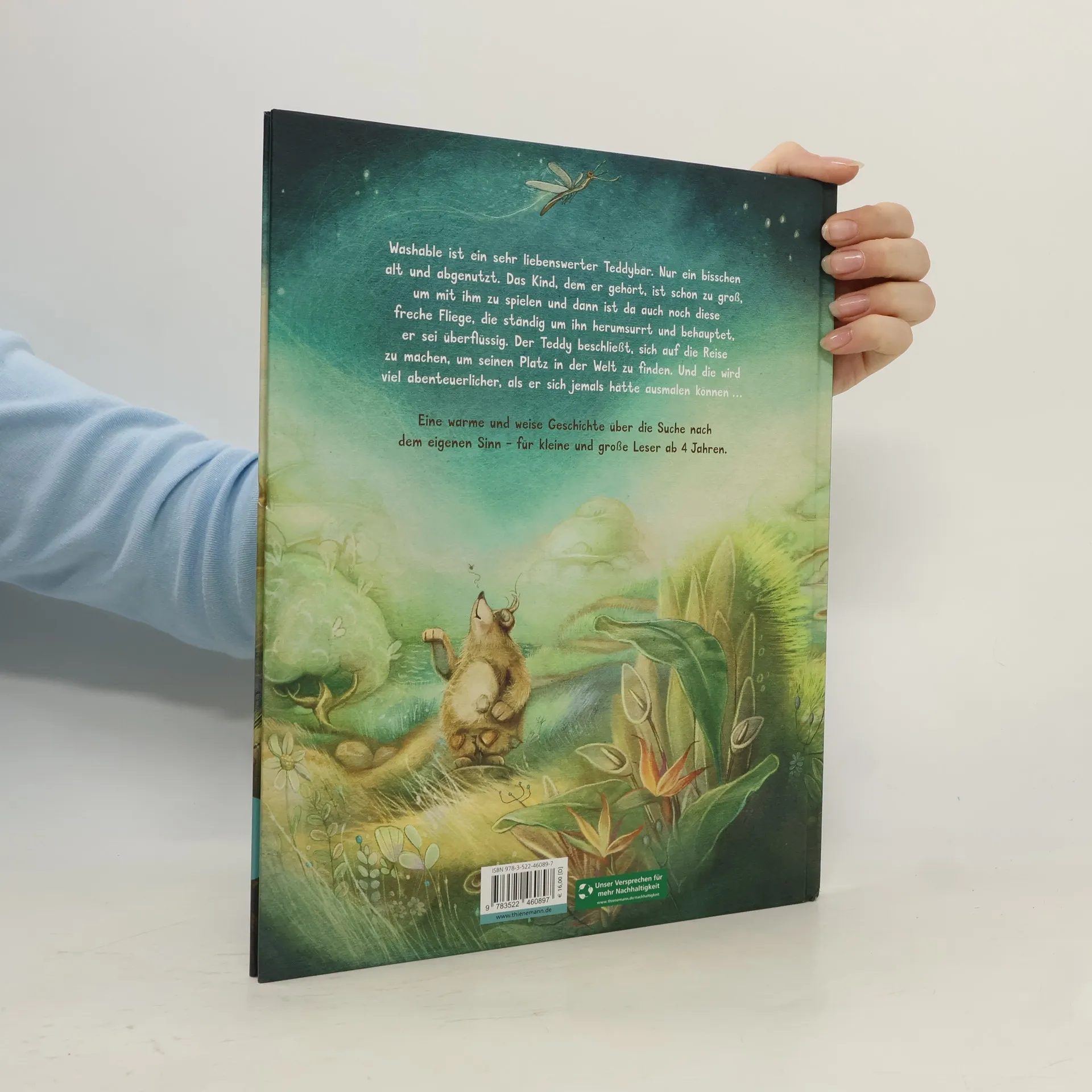 Eine zeitlose Bilderbuchgeschichte von Michael Ende, für Kinder ab 4 Jahren. Wunderbar neu illustriert von Julia Nüsch. Washable ist ein wirklich netter Teddybär. Er ist nur ein bisschen abgeschabt und schon ziemlich alt. Das Kind, dem er gehört, ist längst zu groß, um noch mit ihm zu spielen. Da kann man sich schon einmal über den Sinn seines Daseins Gedanken machen. Ganz besonders, wenn eine impertinente Fliege ständig um einen herumsurrt und sagt, man sei dumm und sinnlos. Teddy zieht also los und will erfahren, wozu er gut ist. Ob ihm die anderen Tiere wohl weiterhelfen können? Julia Nüschs Bilder lassen Kinder Michael Endes Erzählkunst neu erleben Vermittelt kindgerecht zeitlose Werte und regt zum ersten Philosophieren an