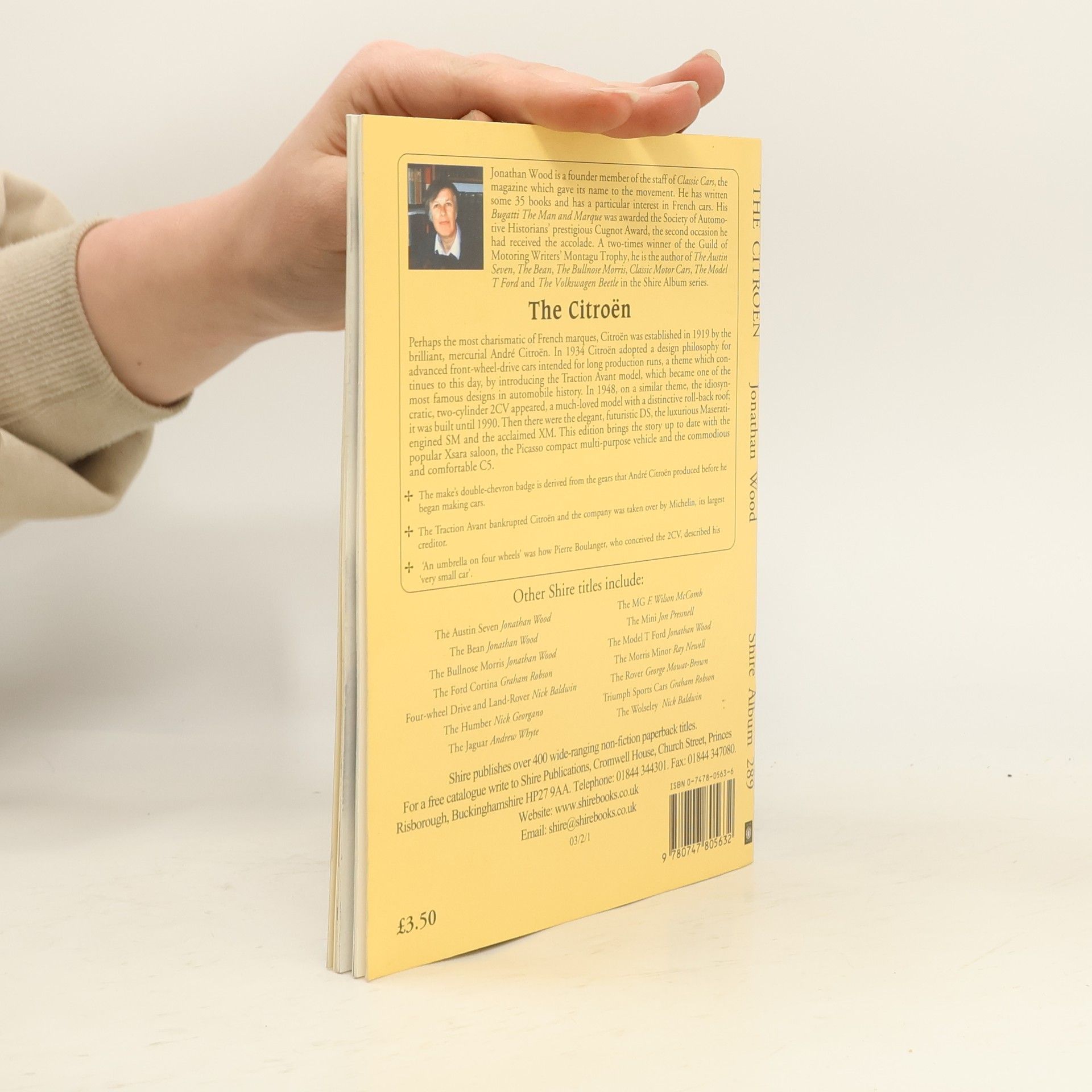 Perhaps the most charismatic of French marques, Citroen was established in 1919 by the brilliant, mercurial Andre Citroen. In 1934 Citroen introduced the Traction Avant model, which became one of the most famous designs in automobile history. In 1948, on a similar theme, the idiosyncratic, two-cylinder 2CV appeared, a much-loved model with a distinctive roll-back roof; it was built until 1990. Then there were the elegant, futuristic DS, the luxurious Maserati-engined SM and the acclaimed XM. This edition brings the story up to date with the popular Xsara saloon, the Picasso compact multi-purpose vehicle and the commodious and comfortable C5. About the author Jonathan Wood is a founder member of the staff of Classic Cars, the magazine which gave its name to the movement. He has written some 35 books and has a particular interest in French cars. Other titles for Shire by this author are: The Bean Austin Seven The Volkswagen Beetle The Bullnose Morris Classic Cars The Model T Ford The Rolls-Royce