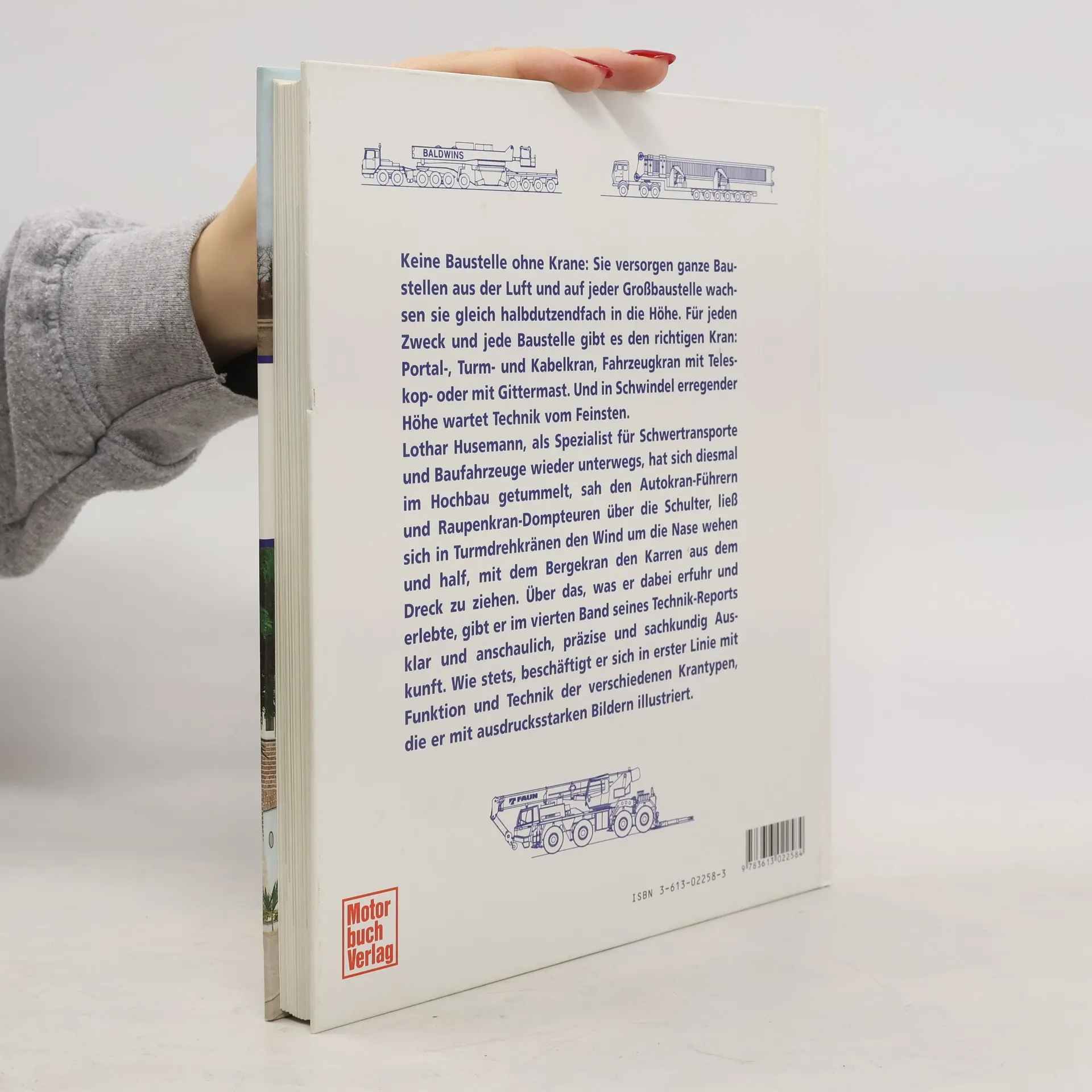 Hoch hinaus Wer Lexika liest, ist immer schlauer. Dort ist unter dem Stichwort Kran zu erfahren, dass es aus dem Mittelhochdeutschen kommt und mit dem Wort 'Kraniche' zu tun hat. Und das wiederum stammt aus dem Althochdeutschen und kommt von 'krähen'. Und so gesehen passt es wieder: Jeder Kran krächzt und quietscht und lärmt (und manchmal auch die Männer, die ihn bedienen). Ein Kran ist allerdings in erster Linie praktisch. Für jeden Zweck und jede Baustelle gibt es den richtigen Kran: Portal-, Turm- und Kabelkran, Fahrzeugkran mit Teleskop- oder mit Gittermast. Und in Schwindel erregender Höhe wartet Technik vom Feinsten. Lothar Husemann, nach seinen furios gestarteten 'Schwertransporte'- und 'Baufahrzeug'-Büchern wieder unterwegs, hat sich diesmal im Hochbau getummelt, sah den Autokran-Führern und Raupen-Dompteuren über die Schulter, ließ sich in Turmdrehkränen den Wind um die Nase wehen und half, mit dem Bergekran den Karren aus dem Dreck zu ziehen. Über das, was er dabei erfuhr und erlebte, gibt er im vierten Band seines Technik-Reports klar und anschaulich, präzise und sachkundig Auskunft. Wie stets, beschäftigt er sich in erster Linie mit Funktion und Technik der verschiedenen Krantypen, die er mit ausdrucksstarken Bildern illustriert.