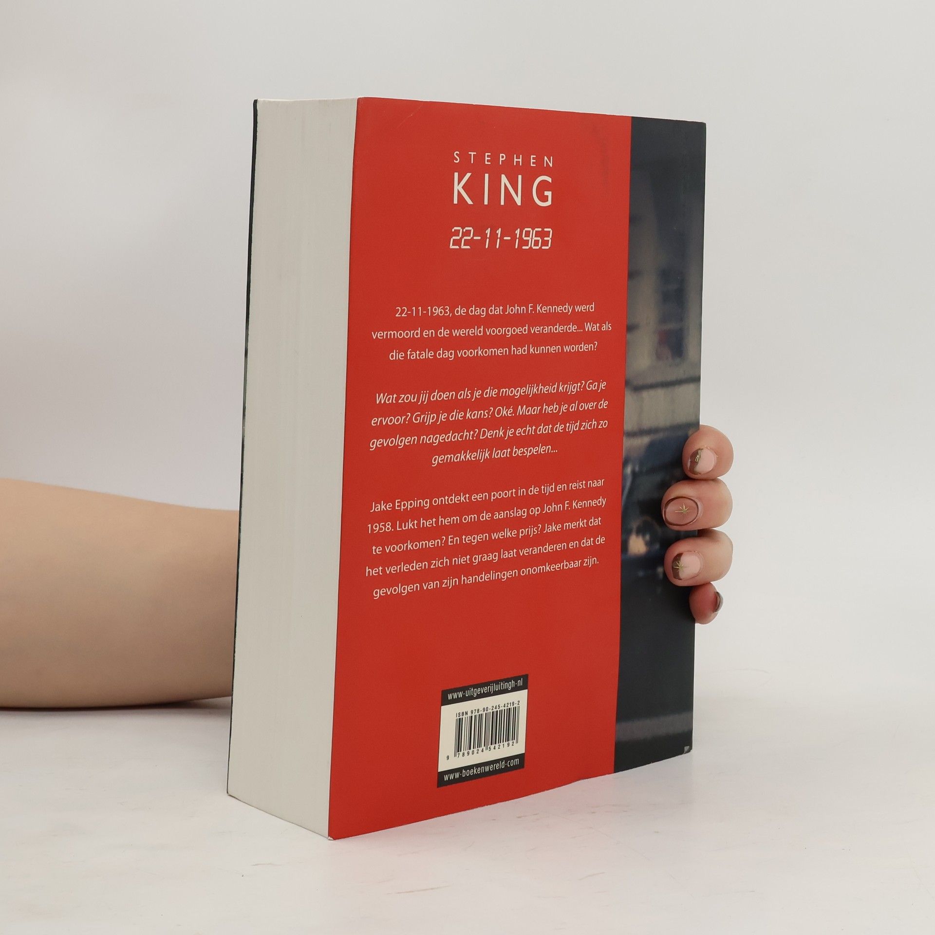 Alternative cover edition for 9789024542192. 22-11-1963, de dag dat John F. Kennedy werd vermoord en de wereld voorgoed veranderde... Wat als die fatale dag voorkomen had kunnen worden? Wat zou je doen als je die mogelijkheid krijgt? Ga je ervoor? Grijp je die kans? Oké. Maar heb je al over de gevolgen nagedacht? Denk je echt at de dtijd zich zo gemakkelijk laat bespelen... Jake Epping ontdekt een poort in de tijd en reist naar 1958. Lukt het hem de aanslag op John F. Kennedy te verijdelen? En tegen welke prijs? Jake merkt dat het verleden weerbarstig is en zich niet graag laat veranderen, en dat de gevolgen van zijn handelingen onomkeerbaar zijn.