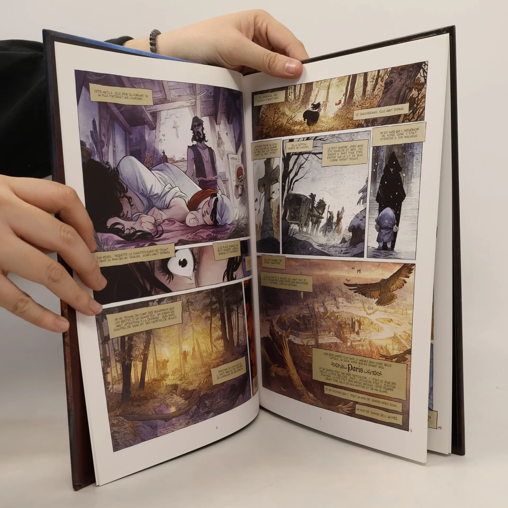 Le roman le plus emblématique de la littérature française, majestueusement adapté en bande dessinéeL'histoire, nous la connaissons tous : dans le Paris grouillant du XVe siècle, une magnifique et jeune gitane danse sur le parvis de la cathédrale Notre Dame de Paris. La beauté d'Esmeralda est son trésor, mais elle causera aussi sa perte. En effet, l'archidiacre de Notre Dame, Claude Frollo, s'éprend éperdument de la belle, et tente de la faire capturer par son sonneur de cloche, le bossu Quasimodo. Il est mis en échec par le flamboyant capitaine Phoebus, qui lui aussi est attiré par Esmeralda, bien qu'étant déjà fiancé à la douce Fleur-de-Lys… Pris entre les désirs coupables de ces trois hommes, le destin d'Esmeralda ne peut plus désormais avoir d'issue heureuse…Robin Recht et Jean Bastide ont choisi de s'approprier ce roman universel de Victor Hugo en une série de trois tomes. Tout dans leur version fait honneur au texte immortel : la fluidité de la narration et la mise en scène, la peinture du Paris du Moyen Âge ainsi que la justesse des visages des protagonistes. Une très belle occasion de redécouvrir ce roman, par les yeux de deux jeunes auteurs éminemment talentueux.