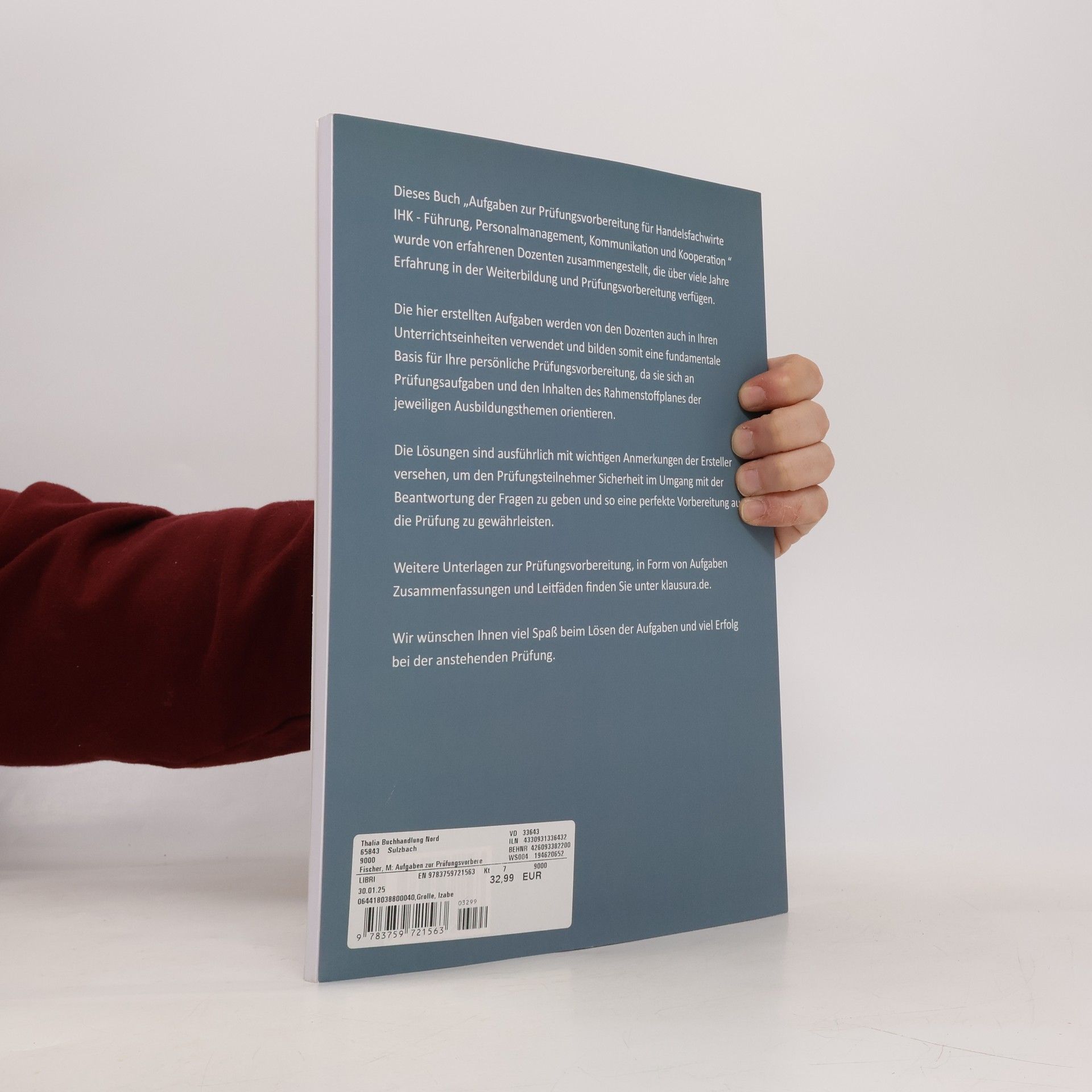 Dieses Buch Aufgaben zur Prüfungsvorbereitung für geprüfte Handelsfachwirte - Führung, Personalmanagement, Kommunikation und Kooperation wurde von erfahrenen Dozenten zusammengestellt, die über viele Jahre Erfahrung in der Weiterbildung und Prüfungsvorbereitung verfügen. Die hier erstellten Aufgaben werden von den Dozenten auch in Ihren Unterrichtseinheiten verwendet und bilden somit eine fundamentale Basis für Ihre persönliche Prüfungsvorbereitung, da sie sich an Prüfungsaufgaben und den Inhalten des Rahmenstoffplanes der jeweiligen Ausbildungsthemen orientieren. Die Lösungen sind ausführlich mit wichtigen Anmerkungen der Ersteller versehen, um den Prüfungsteilnehmer Sicherheit im Umgang mit der Beantwortung der Fragen zu geben und so eine perfekte Vorbereitung auf die Prüfung zu gewährleisten. Weitere Unterlagen zur Prüfungsvorbereitung, in Form von Aufgaben Zusammenfassungen und Leitfäden finden Sie unter klausura.de.
