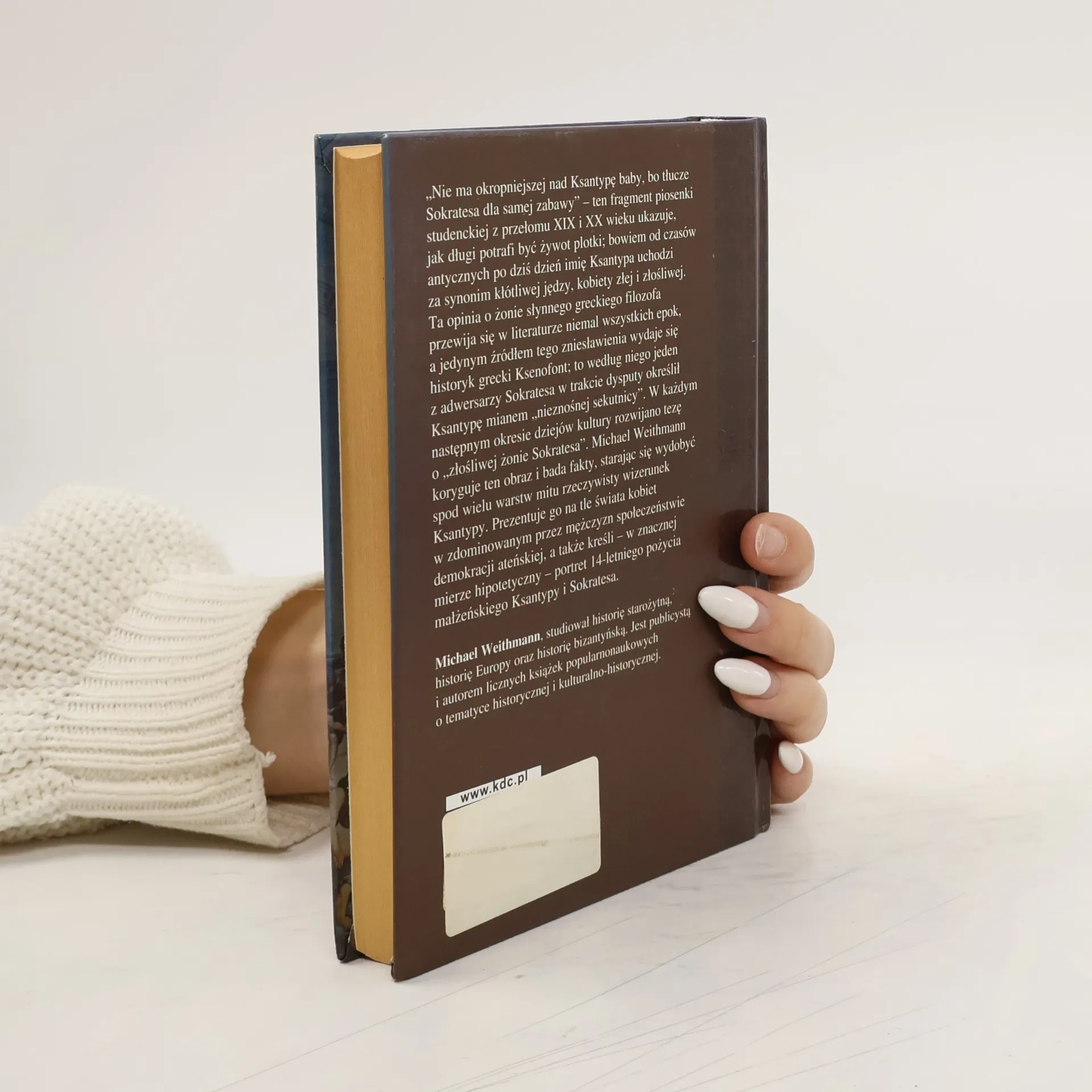 Nie ma okropniejszej nad Ksantypę baby, bo tłucze Sokratesa dla samej zabawy - ten fragment piosenki studenckiej z przełomu XIX i XX wieku ukazuje, jak długi potrafi być żywot plotki, bowiem od czasów antycznych po dziś dzień imię Ksantypa uchodzi za synonim kłótliwej jędzy, kobiety złej i złośliwej. Ta opinia o żonie słynnego greckiego filozofa przewija się w literaturze niemal wszystkich epok, a jedynym źródłem tego zniesławienia wydaje się historyk grecki Ksenofont. To według niego jeden z adwersarzy Sokratesa w trakcie dysputy określił Ksantypę mianem nieznośnej sekutnicy. W każdym następnym okresie dziejów kultury rozwijano tezę o złośliwej żonie Sokratesa. Michael Weithmann koryguje ten obraz i bada fakty, starając się wydobyć spod wielu warstw mitu rzeczywisty wizerunek Ksantypy. Prezentuje go na tle świata kobiet w zdominowanym przez mężczyzn społeczeństwie demokracji ateńskiej, a także kreśli w znacznej mierze hipotetyczny portret 14-letniego pożycia małżeńskiego Ksantypy i Sokratesa.