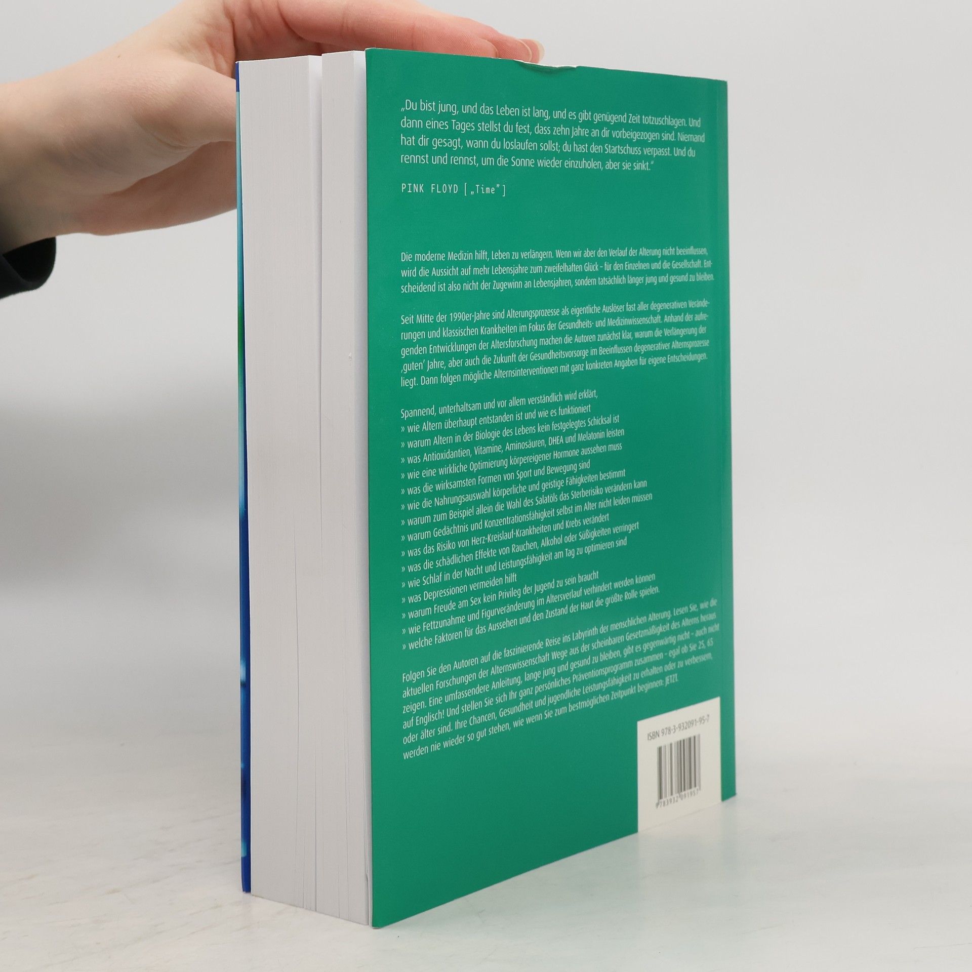 Wie keine andere Publikation – auch keine englische – vermittelt dieses Buch wissenschaftlich fundiert, dabei fesselnd und unterhaltsam das wesentliche Wissen für den gezielten Aufschub des Alterns. Erklärt wird, wie und warum wir altern, mit welchen Strategien degenerative Veränderungen und Alterskrankheiten, z. B. Krebs, Diabetes, oder Alzheimer, aufgeschoben und teilweise sogar verhindert und wie Vitalität und Erscheinungsbild erhalten oder verbessert werden können. Das Ziel ist, die Konstitution des mittleren Lebensabschnitts viele Jahre zu erhalten, um bis ins Höchstalter gesund und leistungsfähig zu bleiben und – so die politische Dimension – unser Gesundheitssystem als Absicherung für alle zu erhalten.