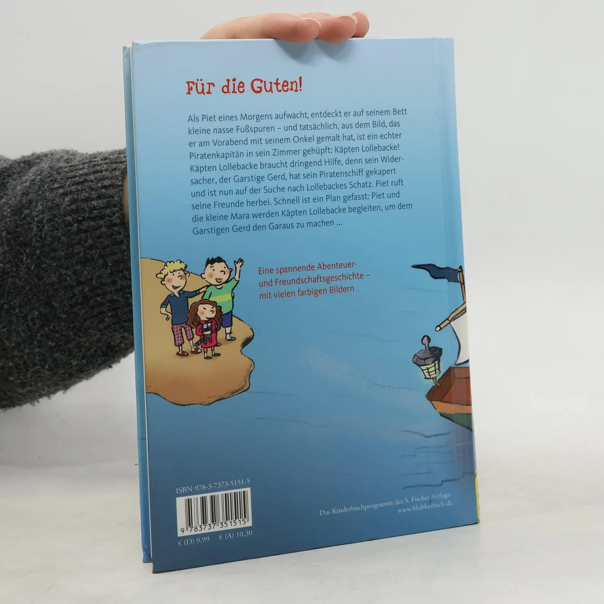 Ein spannendes, phantasievolles Piratenabenteuer für Kinder ab 6 Jahren und zum Vorlesen Der achtjährige Piet wacht an einem Ferientag auf und staunt: Auf seinem Bett sind kleine nasse Fußspuren – und tatsächlich, aus dem Bild, das er am Vorabend mit seinem Onkel gemalt hat, ist ein echter Piratenkapitän in sein Zimmer gehüpft! Käpten Lollebacke braucht Hilfe, denn sein Widersacher, der Garstige Gerd, hat ihm sein Piratenschiff gestohlen und ist nun auf der Suche nach Lollebackes Schatz. Piet und seine Freunde lassen sich nicht zweimal bitten: Sie werden Käpten Lollebacke helfen, sein Schiff, die Schwimmende Landratte, zurückzuerobern. Mit vielen farbigen Bildern von Susanne Göhlich