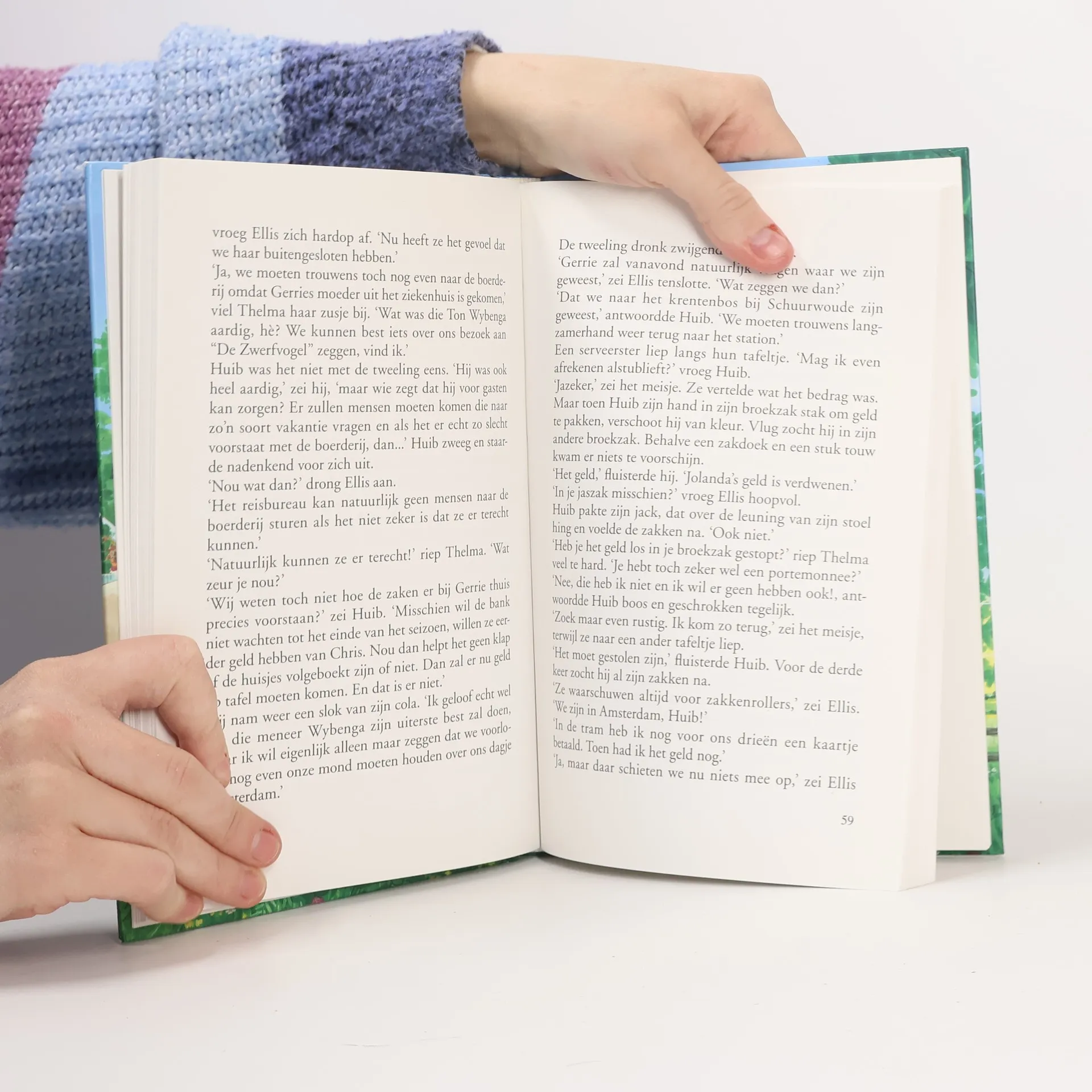De tweeling Ellis en Thelma Bongers lijken als twee druppels water op elkaar. Ze beleven de spannendste avonturen en redden zich (bijna) altijd uit allerlei moeilijke situaties!De meisjes helpen graag op de ponyboerderij van hun vriendin Gerrie. Ze verzorgen de pony's, ook Gerries zieke pony Gonda.Chris - de 'baas' van de boerderij - belandt in het ziekenhuis en daardoor raakt de ponyboerderij in de problemen, maar Ellis en Thelma doen wat ze kunnen. Om de ponyboerderij meer gasten te bezorgen, bezoeken ze met een paar vrienden een reisbureau in Amsterdam. Die middag raken ze hun geld en hun treinkaartjes kwijt... Komen ze weer veilig thuis? Blijft de ponyboerderij bestaan?Lees maar!