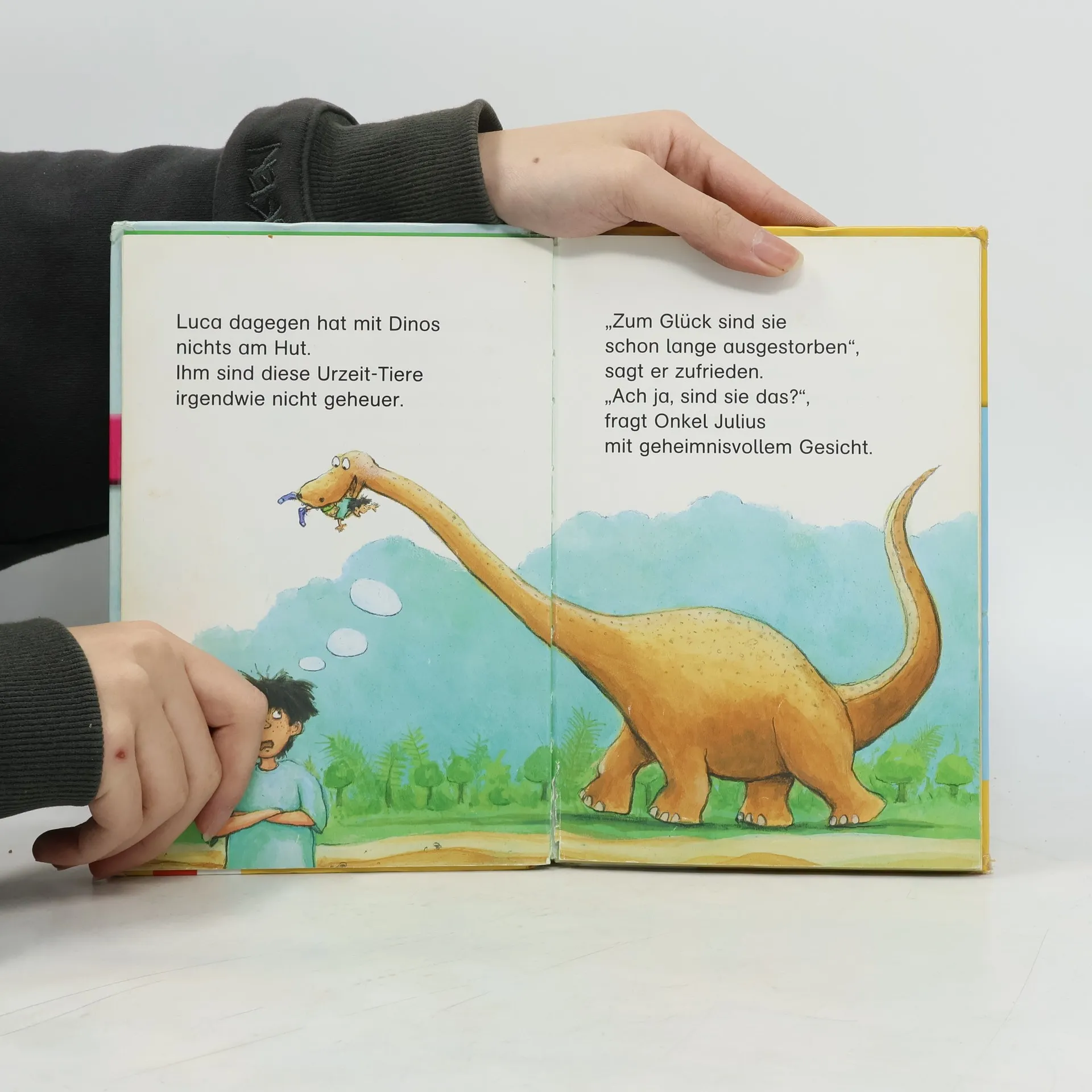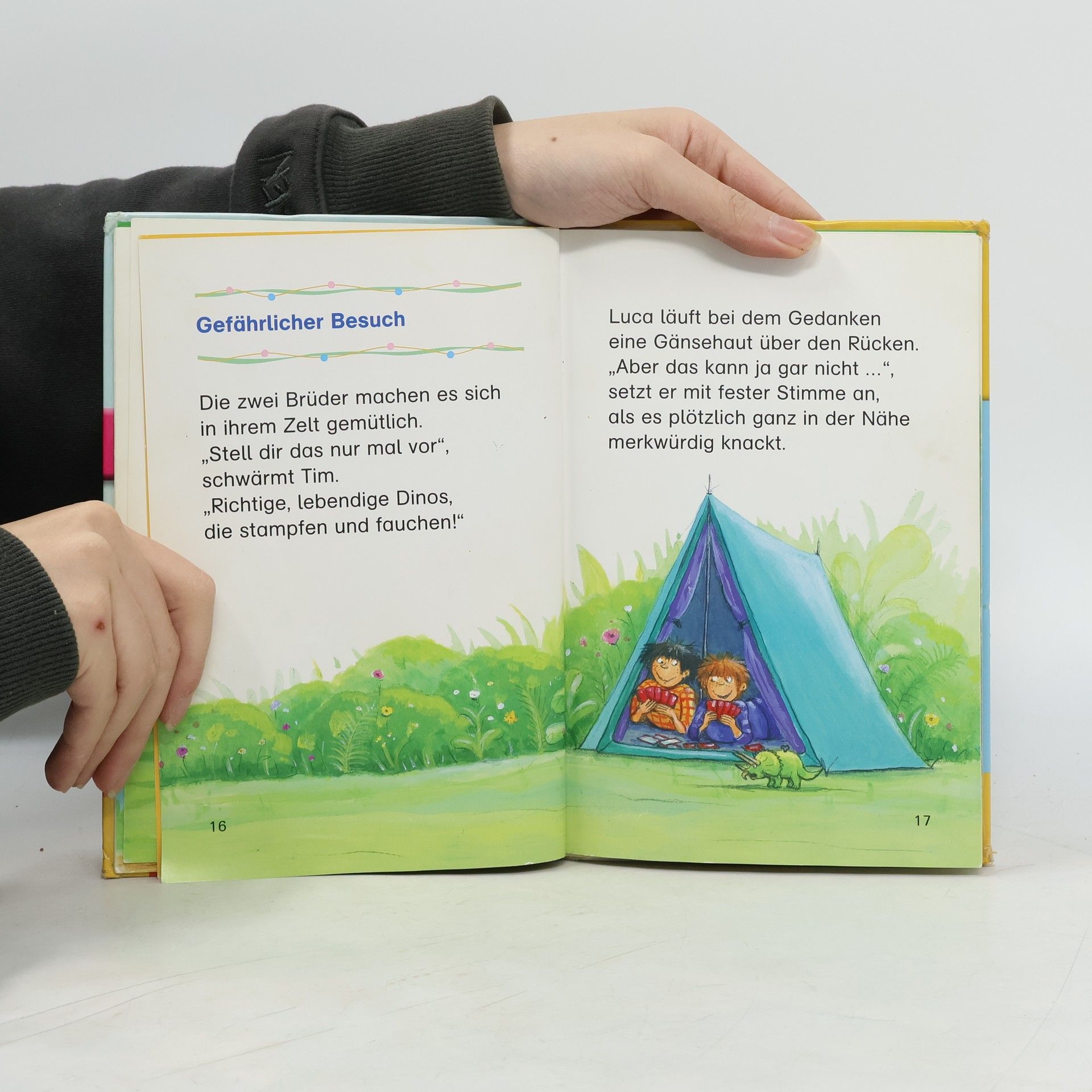 Sind die Dinos wirklich zurück - im Garten von Onkel Julius, wo Tim und Luca zelten? Eine spannende Geschichte für Leseanfänger ab 6.