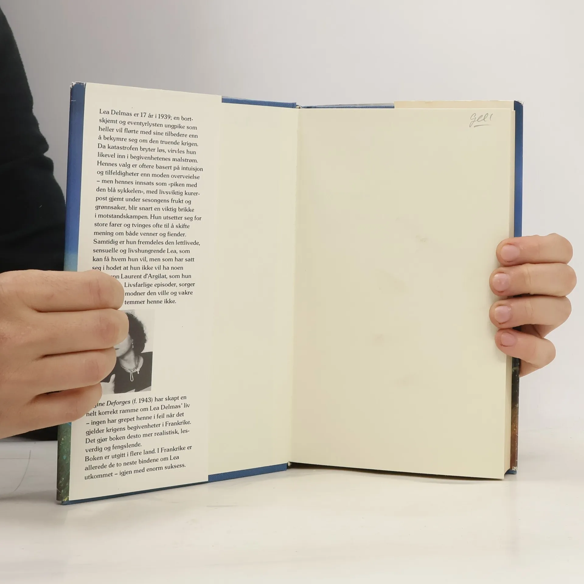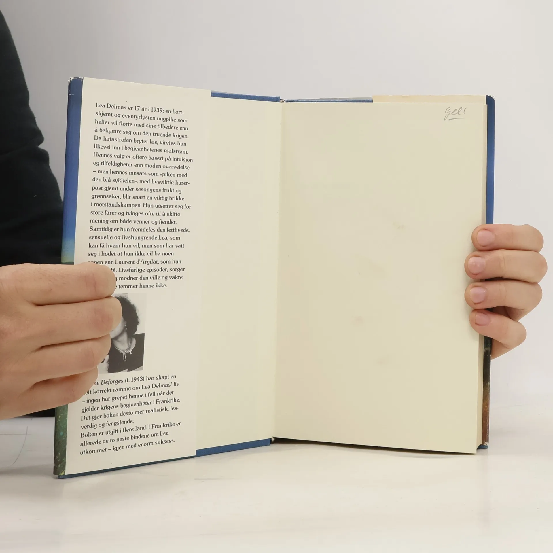 Dette er den første boken om piken med den blå sykkelen. Handlingen starter i 1939 og følger gjennom 4 bøker den 17 år gamle Lea Delmas gjennom krigen. Hun blir et viktig sendebud for motstandsgruppene.