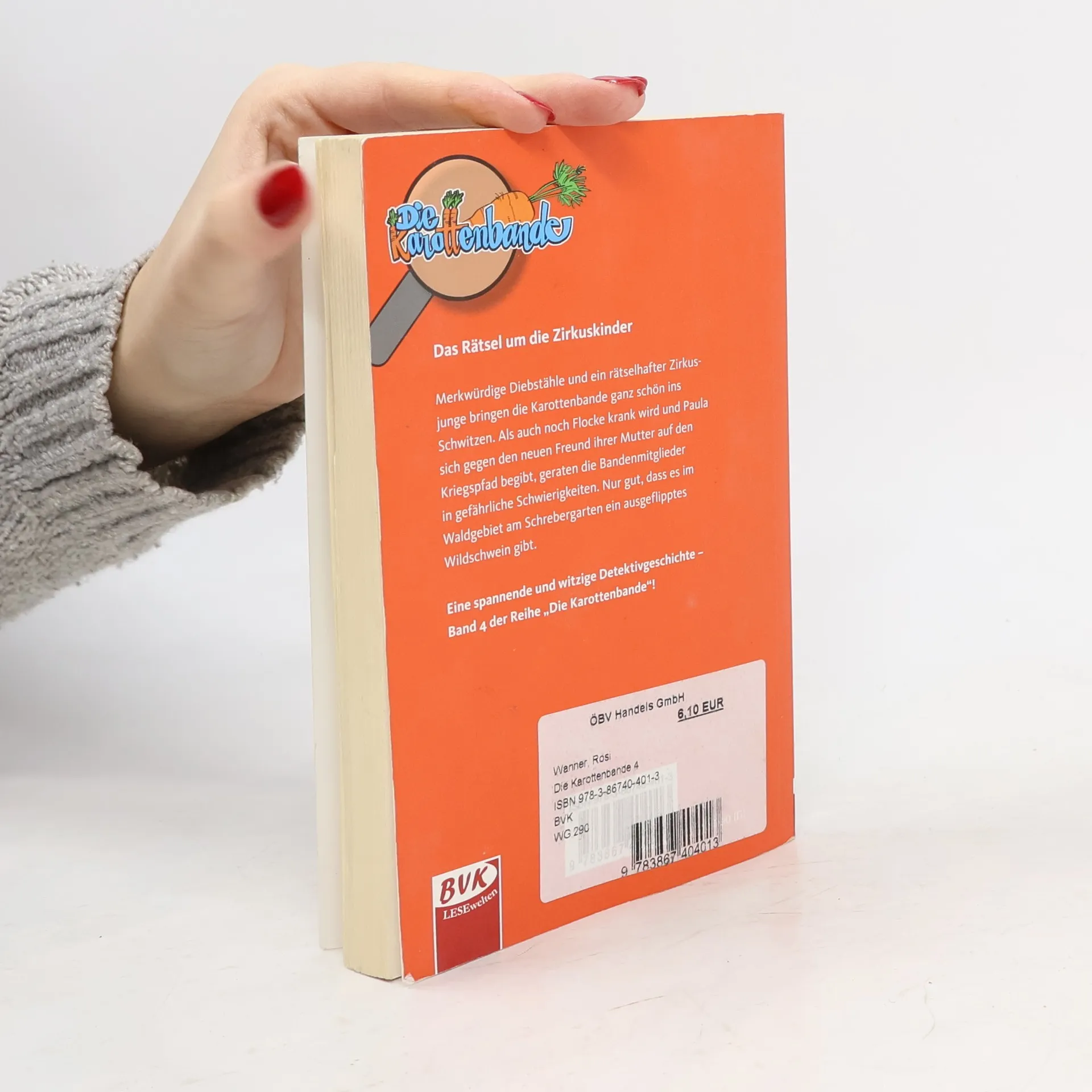 Im vierten Fall der Karottenbande sorgen merkwürdige Diebstähle und ein rätselhafter Zirkusjunge für Aufregung. Als Flocke krank wird und Paula gegen den neuen Freund ihrer Mutter kämpft, geraten die Mitglieder in Schwierigkeiten. Ein ausgeflipptes Wildschwein könnte ihnen helfen.