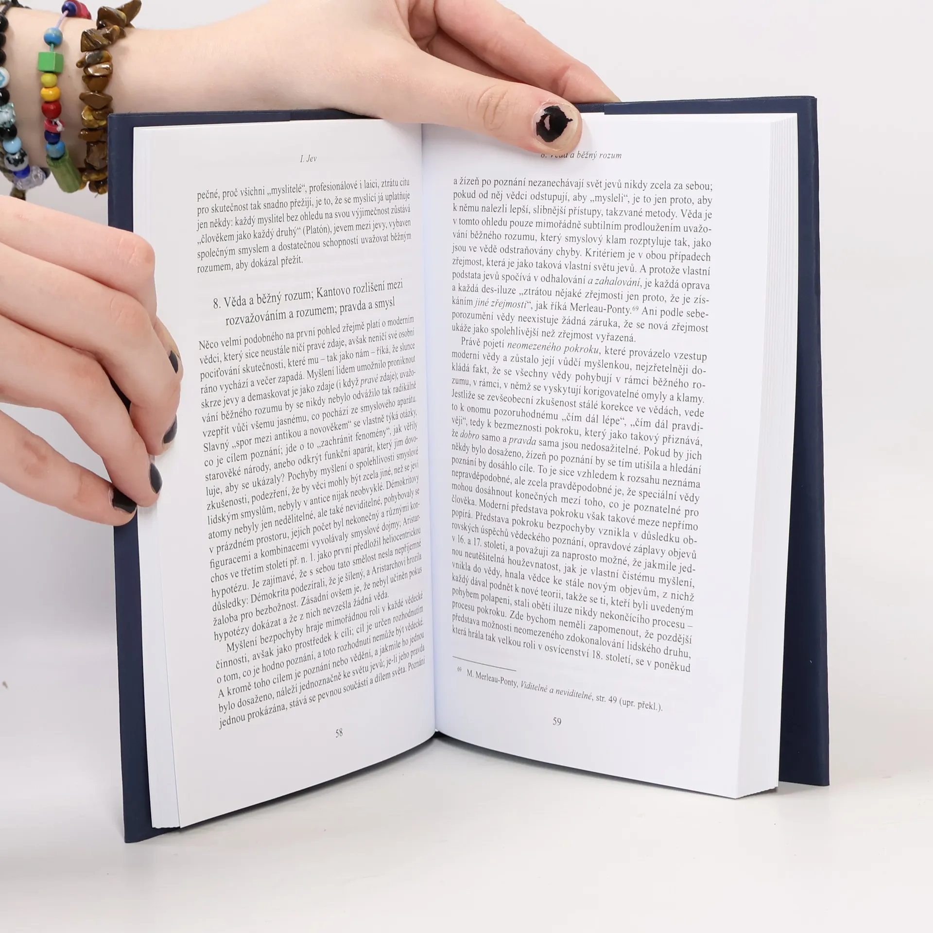 Publikace je rozdělena na čtyři oddíly. Prvý se zabývá světem okolo nás - jevy, druhý duchovními aktivitami ve světě jevů. Ve třetím oddíle se autorka snaží vyhmátnout důvod toho, co nás nutí myslet, zatímco v závěrečném shrnuje celou problematiku. Ve všech oddílech srovnává a cituje myšlenky a výroky světových filozofů od antiky po svou současnost.