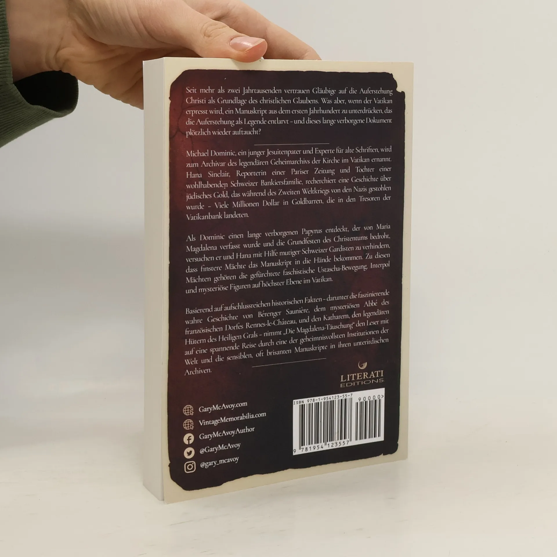 Seit mehr als zwei Jahrtausenden vertrauen Gläubige auf die Auferstehung Christi als Grundlage des christlichen Glaubens. Was aber, wenn der Vatikan erpresst wird, ein Manuskript aus dem ersten Jahrhundert zu unterdrücken, das die Auferstehung als Legende entlarvt - und dieses lange verborgene Dokument plötzlich wieder auftaucht? Michael Dominic, ein junger Jesuitenpater und Experte für alte Schriften, wird zum Archivar des legendären Geheimarchivs der Kirche im Vatikan ernannt. Hana Sinclair, Reporterin einer Pariser Zeitung und Tochter einer wohlhabenden Schweizer Bankiersfamilie, recherchiert eine Geschichte über jüdisches Gold, das während des Zweiten Weltkriegs von den Nazis gestohlen wurde - Viele Millionen Dollar in Goldbarren, die in den Tresoren der Vatikanbank landeten. Als Dominic einen lange verborgenen Papyrus entdeckt, der von Maria Magdalena verfasst wurde und die Grundfesten des Christentums bedroht, versuchen er und Hana mit Hilfe mutiger Schweizer Gardisten zu verhindern, dass finstere Mächte das Manuskript in die Hände bekommen. Zu diesen Mächten gehören die gefürchtete faschistische Ustascha-Bewegung, Interpol und mysteriöse Figuren auf höchster Ebene im Vatikan. Basierend auf aufschlussreichen historischen Fakten - darunter die faszinierende wahre Geschichte von Bérenger Saunière, dem mysteriösen Abbé des französischen Dorfes Rennes-le-Château, und den Katharern, den legendären Hütern des Heiligen Grals - nimmt "Die Magdalena-Täuschung" den Leser mit auf eine spannende Reise durch eine der geheimnisvollsten Institutionen der Welt und die sensiblen, oft brisanten Manuskripte in ihren unterirdischen Archiven.