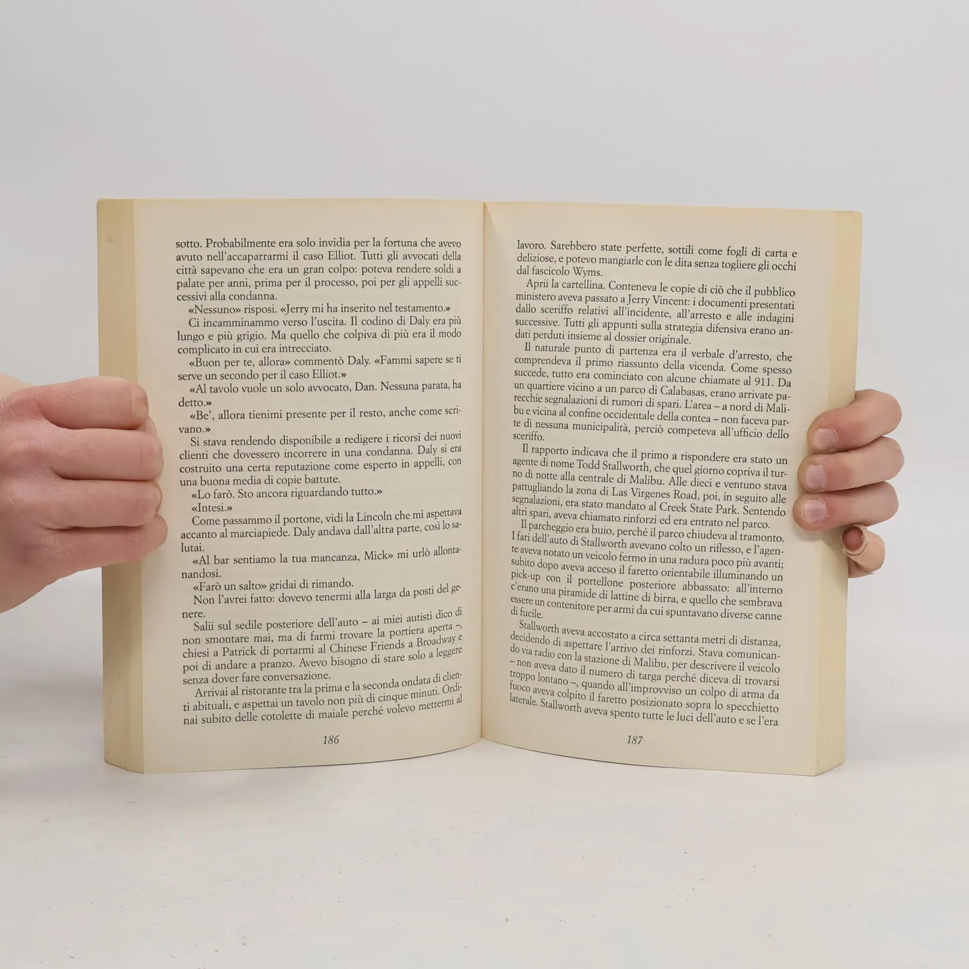 Anni di cause di serie B, poi una ferita da arma da fuoco che gli ha causato una dipendenza da psicofarmaci e l'ha tolto a lungo dalla piazza: Mickey Haller non può certo definirsi un avvocato di grido. Eppure, la ruota sembra finalmente girare nel verso giusto quando il suo più illustre collega Jerry Vincent viene misteriosamente assassinato e lui ne eredita tutti i clienti. Tra questi spicca Walter Elliot: noto produttore di Hollywood, accusato di aver ucciso la moglie e il suo amante. La difesa del magnate potrebbe essere per Haller il biglietto per il successo che da tanto aspettava. Ma sulla sua strada incontra il detective Harry Bosch: più di trent'anni di carriera alle spalle, una vocazione per la giustizia che va oltre il semplice senso del dovere, una leggenda per tutti. Solo Haller sembra non averne mai sentito parlare. Tuttavia, a osservarlo meglio, anche per lui quell'uomo dagli occhi da squalo ha un'aria vagamente familiare. Tra i due non è certo amore a prima vista. Perché Bosch guida l'indagine sulla morte dell'avvocato Vincent, e i clienti ora difesi da Haller sono tutti potenziali indiziati per il detective. Si fronteggiano così dai lati opposti della barricata, finché Haller scopre che lui stesso potrebbe essere il nuovo bersaglio del killer. Solo allora Bosch e Haller capiranno che fare squadra è l'unica soluzione possibile. Dopotutto, non sono che le due facce della stessa medaglia. E hanno in comune molto più di quanto loro stessi immaginino.