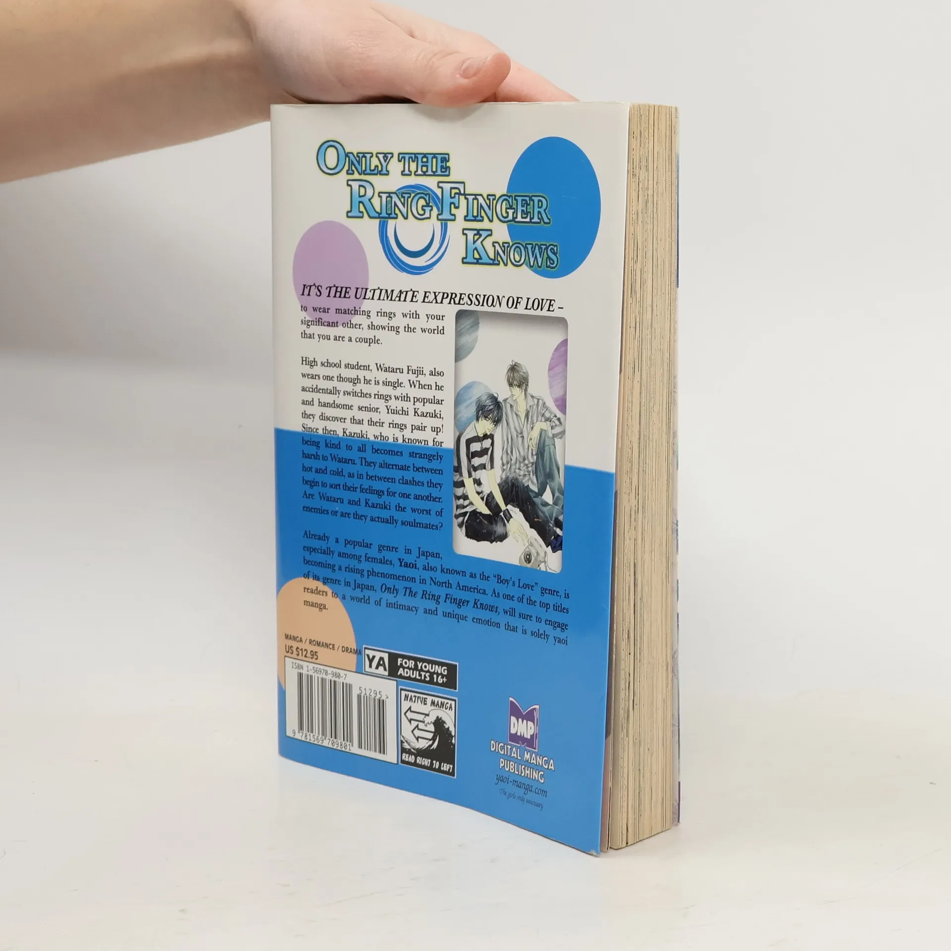 It's the ultimate expression of love -to wear matching rings with your significant other, showing the world that you are a couple.High school student, Wataru Fujii, also wears one though he is single. When he accidentally switches rings with popular and handsome senior, Yuichi Kazuki, they discover that their rings pair up! Since then, Kazuki, who is known for being kind to all becomes strangely harsh to Wataru. They alternate between hot and cold, as in between clashes they begin to sort their feelings for one another. Are Wataru and Kazuki the worst of enemies or are they actually soulmates?Already a popular genre in Japan, especially among females, Yaoi, also known as the "Boy's Love" genre, is becoming a rising phenomenon in North America. As one of the top titles of its genre in Japan, Only The Ring Finger Knows , will sure to engage readers to a world of intimacy and unique emotion that is solely yaoi manga.