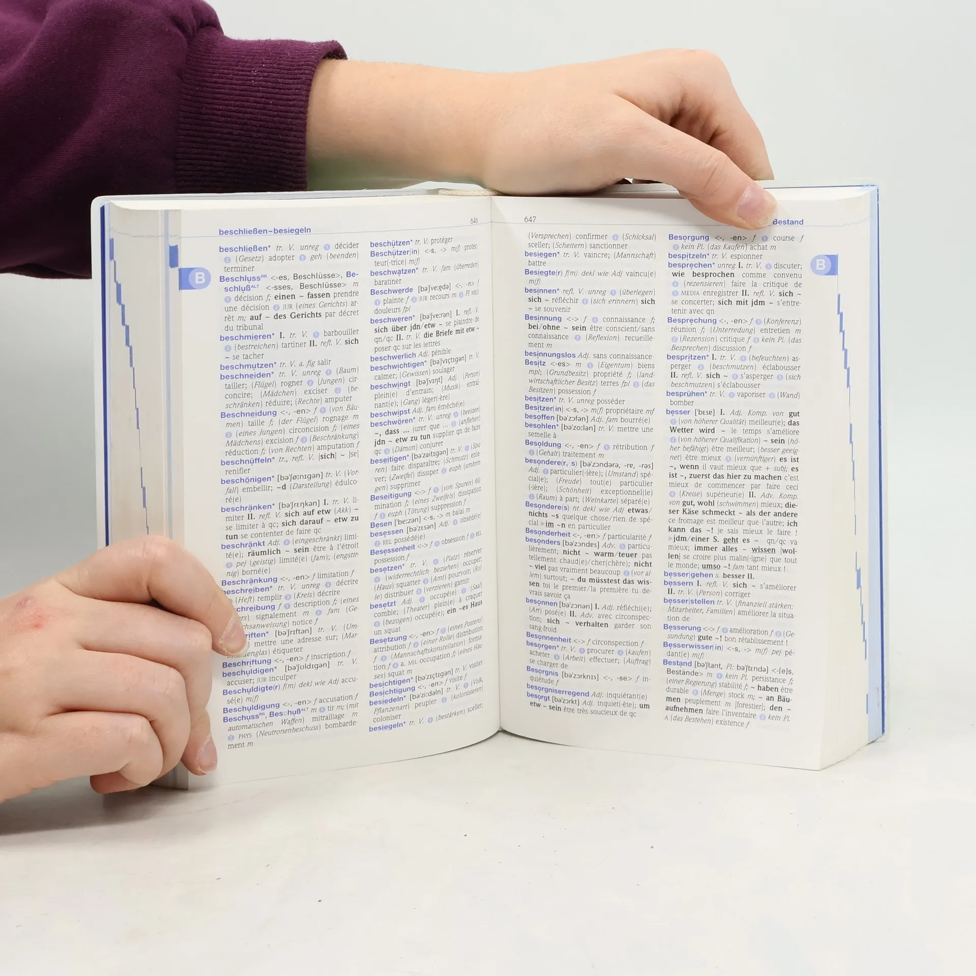 Zweisprachiges Wörterbuch mit 75.000 Stichwörtern und Wendungen. Die in BA 9/07 angezeigte Vorauflage lag zum Vergleich nicht vor, am Umfang hat sich nichts verändert. Eine gut lesbare Schriftgröe︢ und die Hauptstichwörter in blauem Fettdruck sorgen für ein übersichtliches Erscheinungsbild. Geteiltes Bild bei den Stichproben auf Aktualität: Enthalten waren z. B. "Streaming", "Blogosphäre" und "Energiewende", nicht gefunden wurden "App", "Smartphone", "Nichtregierungsorganisation". Da die Vorauflage von 2007 als identisch mit der Vorvorauflage von 2005 beschrieben wurde, könnte angesichts der verstrichenen Zeit verstärkt über einen Ersatz nachgedacht werden, wiewohl das Gros der allgemeinsprachlichen Einträge sich nicht verändert haben dürfte. Vom Umfang her liegt das Wörterbuch zwischen den kürzlich angezeigten Langenscheidt-Titeln "Langenscheidt Praktisches Wörterbuch Französisch" (ID-A 46/13) mit 55.000 Stichwörtern und "Langenscheidt Taschenwörterbuch Französisch" (ID-A 10/13) mit 130.000 Stichwörtern