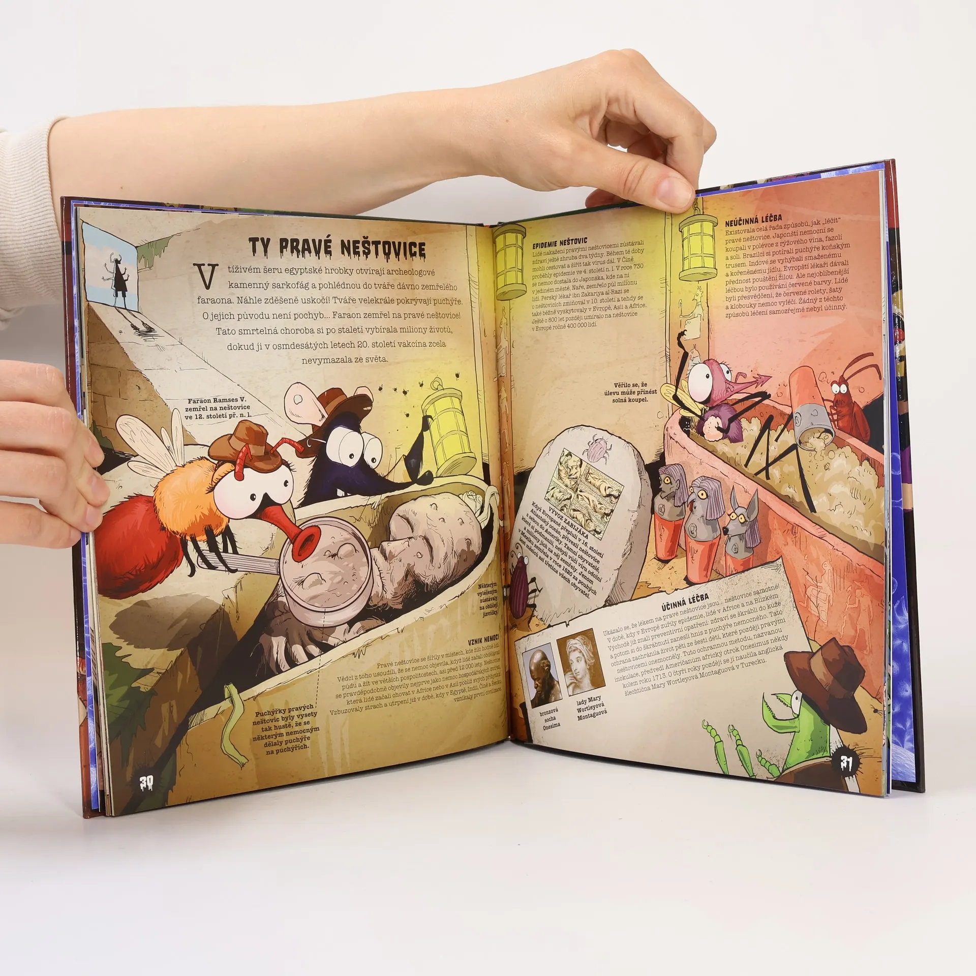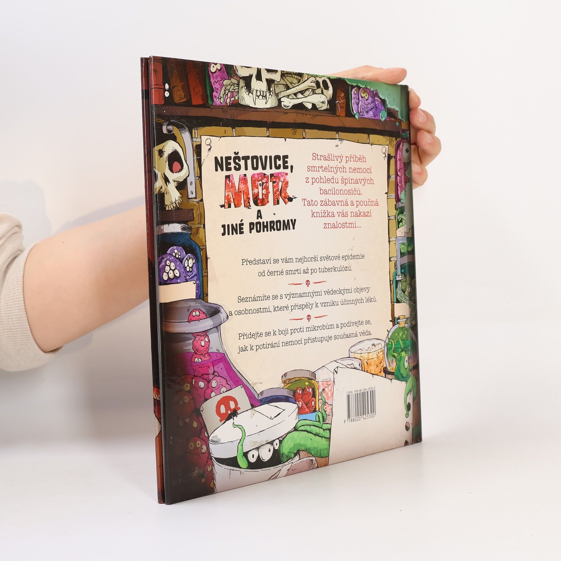 Strašlivý příběh smrtelných nemocí z pohledu špinavých bacilonosičů. Představí se vám nejhorší světové epidemie od černé smrti až po tuberkulózu, seznámíte se však také s významnými vědeckými objevy a osobnostmi, které přispěly ke vzniku účinných léků. Knihou vtipně provázejí ilustrované postavičky přenašečů jednotlivých chorob a názorně čtenáře zasvěcují do celé problematiky. Tato originální encyklopedie tak velice zábavnou formou odkrývá celou řadu zajímavostí k ne příliš humornému tématu a zaujme k četbě jak děti, tak dospělé.