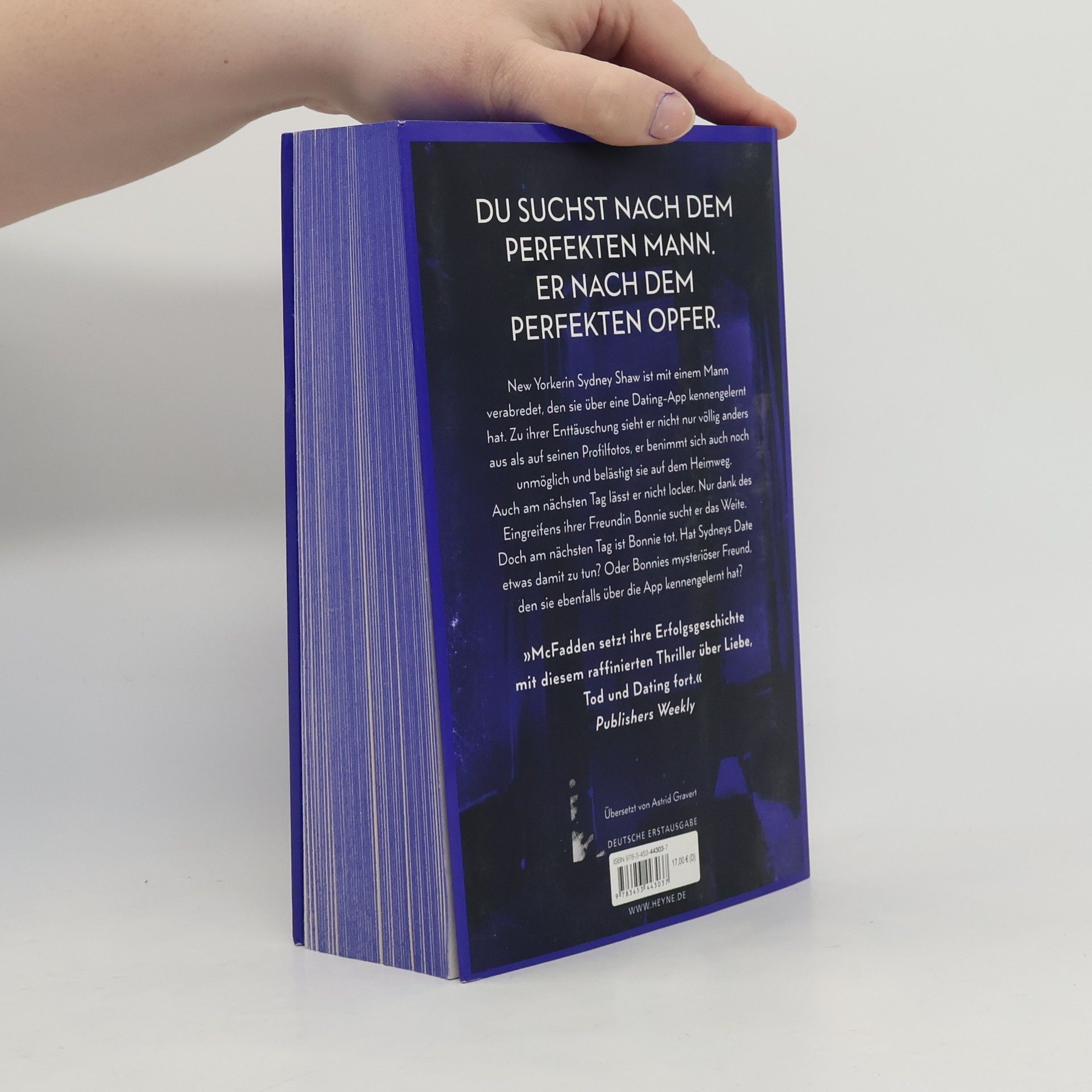 Du suchst nach dem perfekten Mann. Er nach dem perfekten Opfer. Mit farbig gestaltetem Buchschnitt – nur in limitierter Erstauflage der gedruckten Ausgabe (Lieferung je nach Verfügbarkeit) Sydney Shaw hatte immer Pech mit ihren Dates. Bis sie Tom traf. Tom scheint perfekt: Er ist charmant, attraktiv und arbeitet als Arzt in einem Krankenhaus. Dann erschüttert der brutale Mord an einer Frau die Stadt. Die Polizei tippt auf einen Serientäter, der sich mit seinen Opfern zu einem Date verabredet, bevor er zuschlägt. Sydney sollte sich sicher fühlen. Schließlich hat sie Tom. Warum hat sie nur das Gefühl, dass mit ihm etwas nicht stimmt? Jemand beobachtet sie auf Schritt und Tritt. Sie muss der Wahrheit schnell auf die Spur kommen – sonst könnte sie das nächste Opfer sein …
