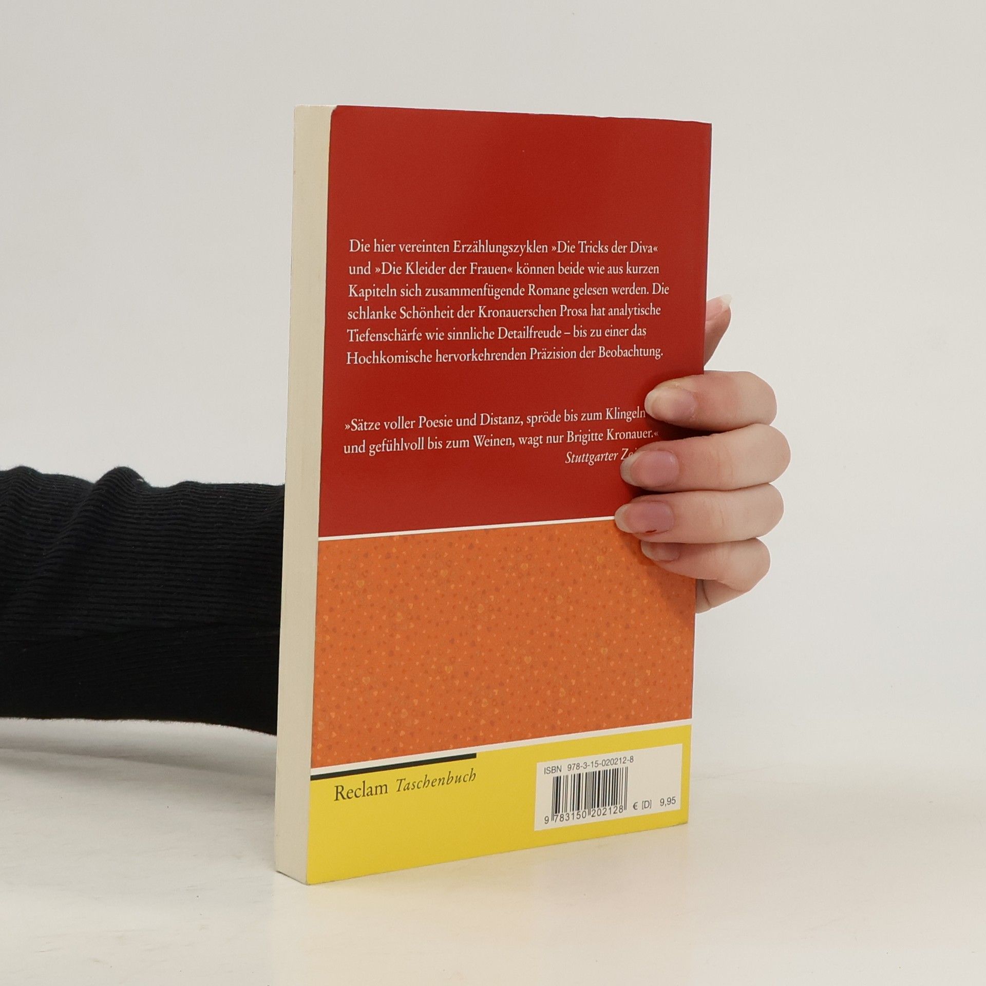 Brigitte Kronauer ist zu gratulieren: zu ihrem unverwechselbaren Stil, zu ihrer Sprache, deren Beweglichkeit und Präzision in hochkomische Höhen führt, zu ihrer Scharfsinnigkeit, von der erkenntnislustige Leser/innen massenweise profitieren können – und zu ihrem 70. Geburtstag am 29. Dezember 2010! Aus diesem Anlass vereinen wir die beiden Erzählungszyklen »Die Tricks der Diva« und »Die Kleider der Frauen« in einem Taschenbuch.
