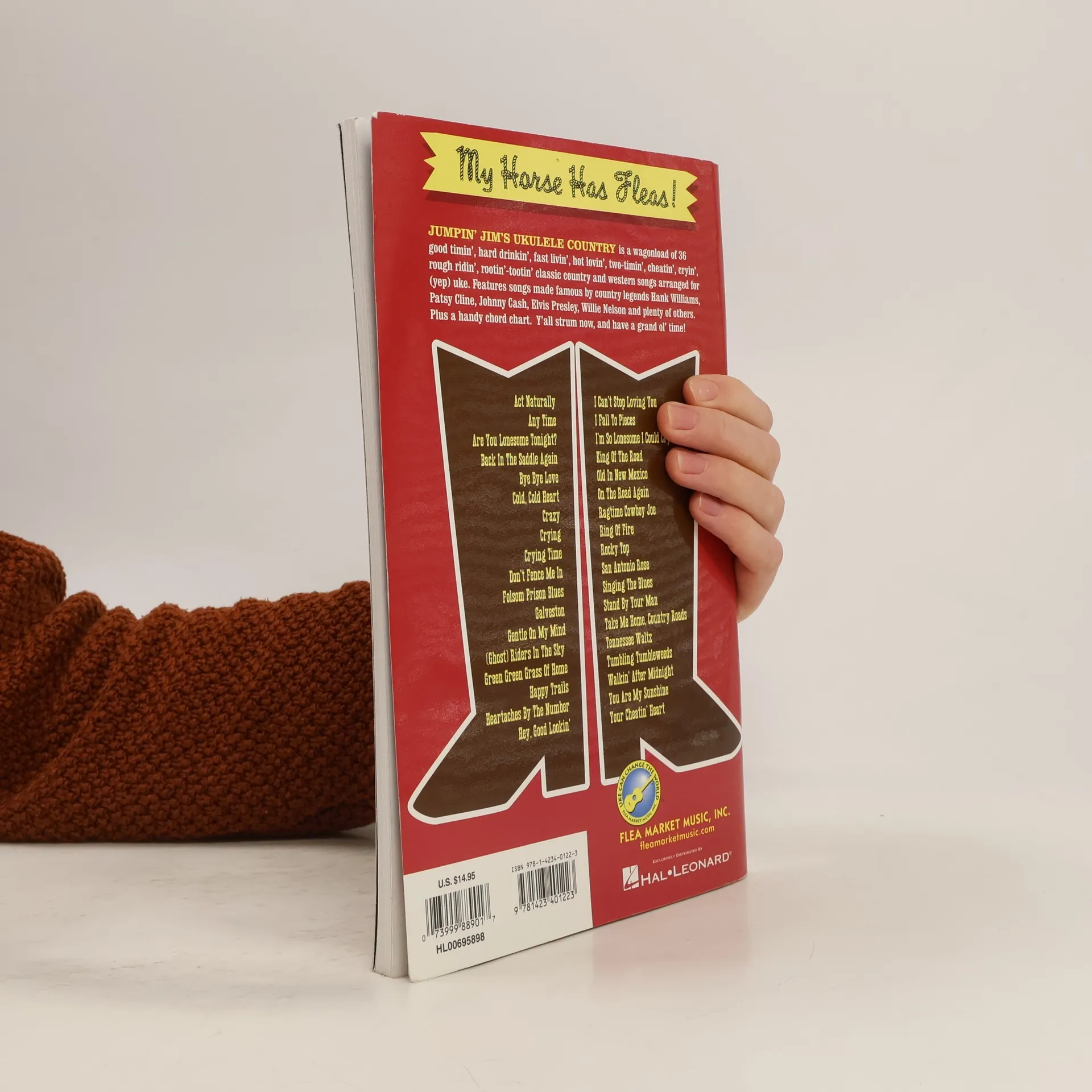 (Ukulele). Jumpin' Jim's Ukulele Country is a collection of 36 classic country and western songs arranged for ukulele. Includes hits made famous by artists such as Hank Williams, Patsy Cline, Johnny Cash, Elvis Presley, Willie Nelson, Glen Campbell and Gene Autry. Songs include: Don't Fence Me In * On the Road Again * Ring of Fire * Stand by Your Man * Bye Bye Love * Hey, Good Lookin' * Crazy * You're Cheatin' Heart * and 28 others. Also includes chord chart and fun country photos and graphics.