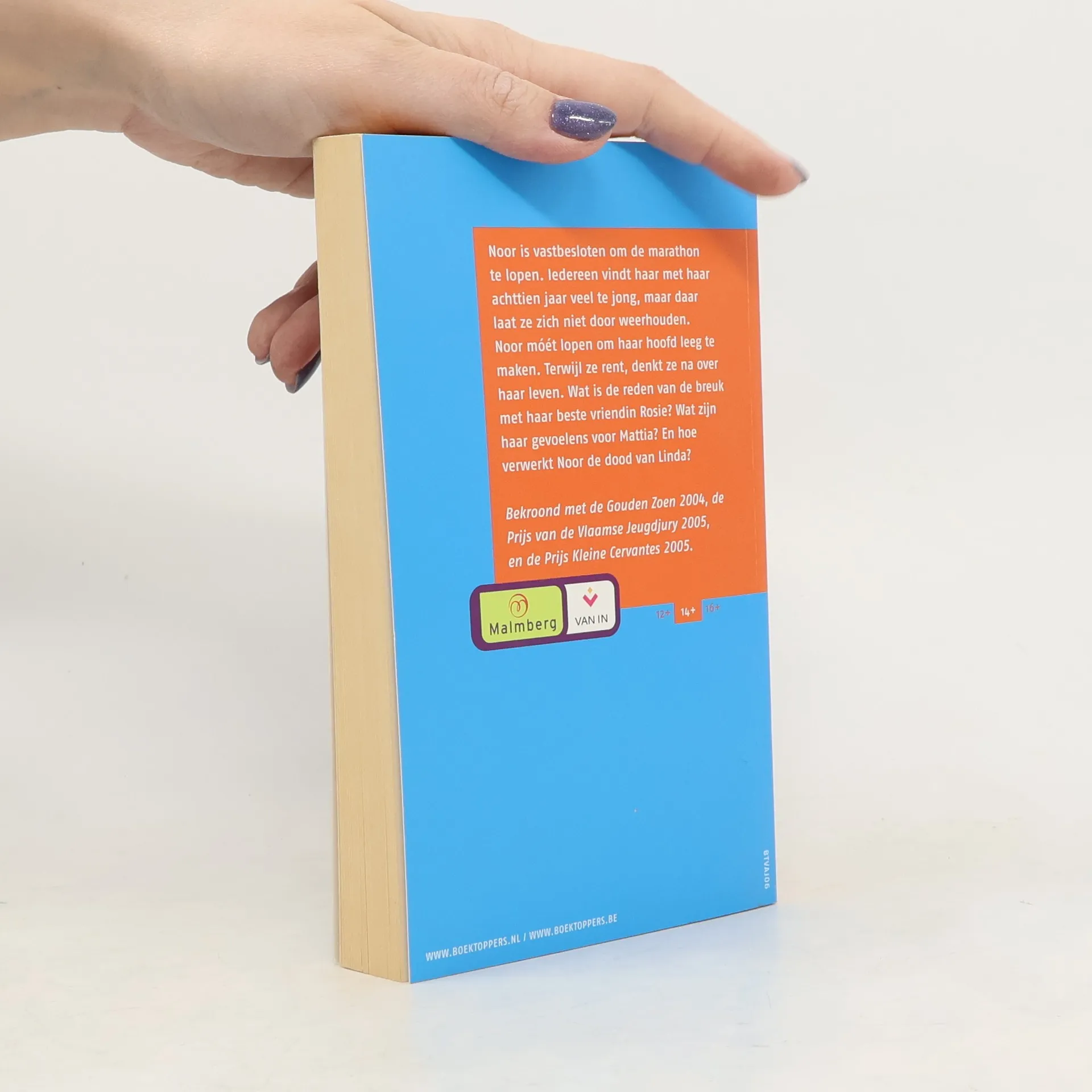 Noor is achttien en iedereeen vindt dat te jong om de marathon te lopen. Maar Noor is een oertalent, snel als de wind, met een enorm uithoudingsvermogen. En ze is koppig. Misschien haalt zij die 42,195 km wel. Tegen alle twijfels in. Ze loopt, en loopt, en loopt. En ondertussen schieten er flitsen van een andere tijd door haar hoofd. Toen Rosie haar liefste vriendin was en ze met Rosies broer Mattia ging trouwen.Toen Linda nog gewoon Linda was. Tot op een dag alles verschrikkelijk fout liep. Kon je maar de schaar zetten in het leven. Eruit knippen wat je niet bevalt, zoals die dingen waar je vanbinnen dood aan gaat. Maar dan zou Noor misschien nu geen marathon willen lopen. Dan zou ze niet kunnen wat ze nu kan.