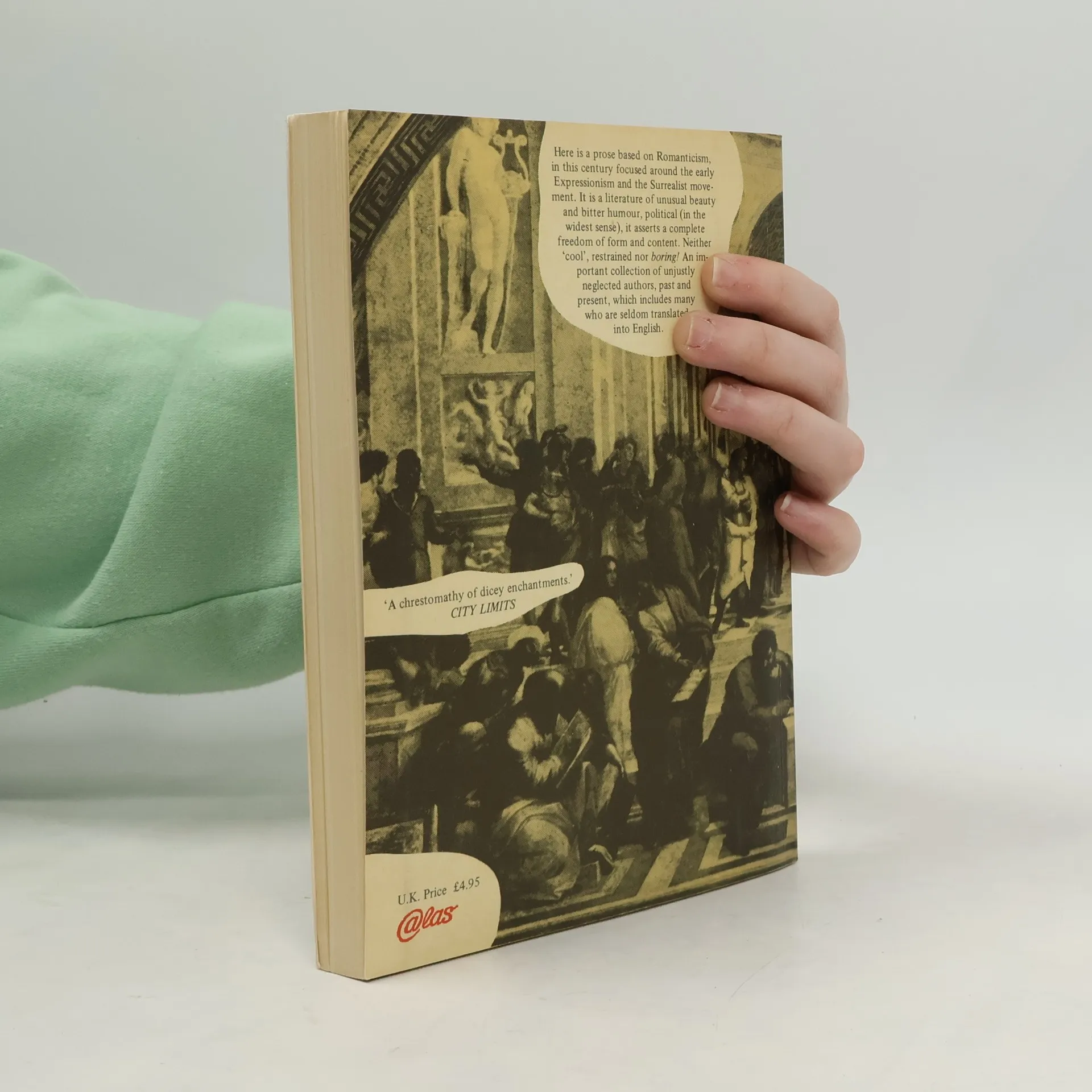 Here is prose based on Romanticism, in this century focused around the early Expressionism and the Surrealist movement. It is a literature of unusual beauty and bitter humour, political (in the widest sense), it asserts a complete freedom of form and content. Neither 'cool', restrained nor *boring*! An important collection of unjustly neglected authors. past and present, which includes many who are seldom translated into English.