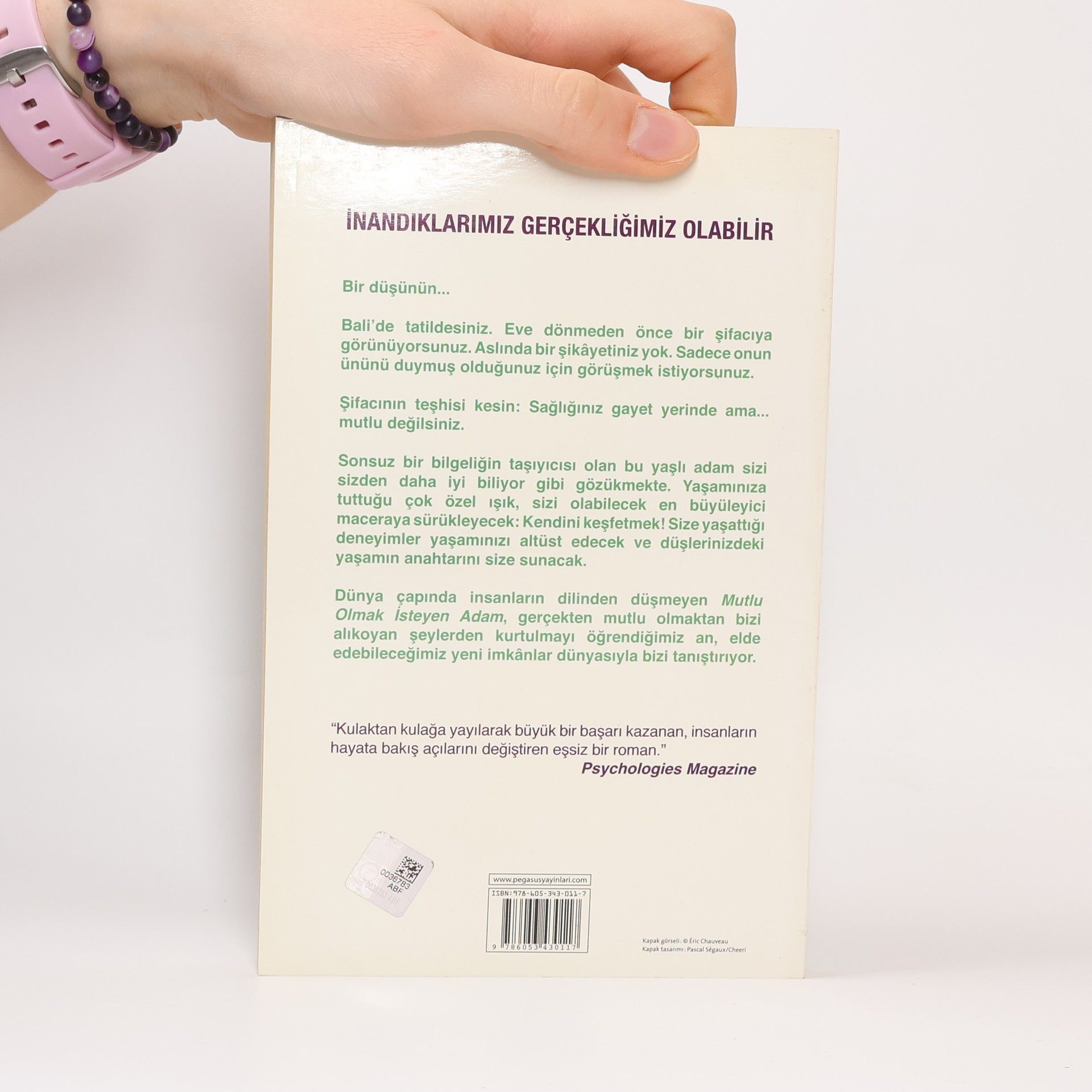Pegasus Yayınları | Edebiyat İNANDIKLARIMIZ GERÇEKLİĞİMİZ OLABİLİR Bir düşünün... Balide tatildesiniz. Eve dönmeden önce bir şifacıya görünüyorsunuz. Aslında bir şikâyetiniz yok. Sadece onun ününü duymuş olduğunuz için görüşmek istiyorsunuz. Şifacının teşhisi kesin: Sağlığınız gayet yerinde ama... mutlu değilsiniz. Sonsuz bir bilgeliğin taşıyıcısı olan bu yaşlı adam sizi sizden daha iyi biliyor gibi gözükmekte. Yaşamınıza tuttuğu çok özel ışık, sizi olabilecek en büyüleyici maceraya sürükleyecek: Kendini keşfetmek! Size yaşattığı deneyimler yaşamınızı altüst edecek ve düşlerinizdeki yaşamın anahtarını size sunacak. Dünya çapında insanların dilinden düşmeyen Mutlu Olmak İsteyen Adam, gerçekten mutlu olmaktan bizi alıkoyan şeylerden kurtulmayı öğrendiğimiz an, elde edebileceğimiz yeni imkânlar dünyasıyla bizi tanıştırıyor. Kulaktan kulağa yayılarak büyük bir başarı kazanan, insanların hayata bakış açılarını değiştiren eşsiz bir roman. -Psychologies Magazine