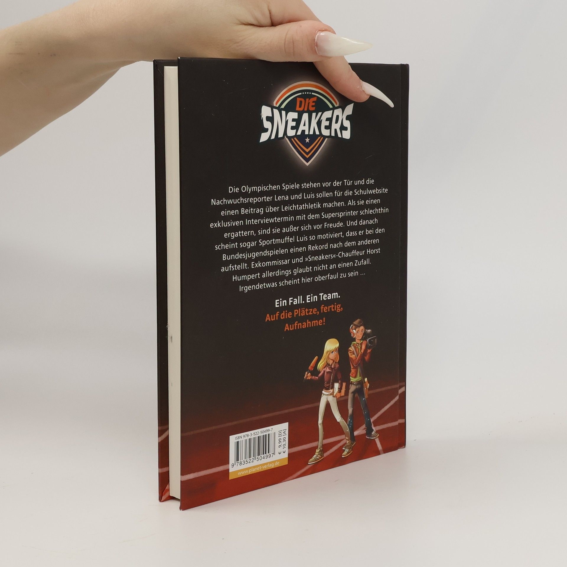 Ein Fall. Ein Team – Auf die Plätze, fertig, Aufnahme! Die Olympischen Spiele stehen vor der Tür, daher sollen Lena und Luis für ihre Schulwebsite einen Beitrag über Leichtathletik machen. Perfekt – denn im Moment findet in ihrem Ort ein Sportfestival statt, bei dem sich die Teilnehmer für die Olympischen Spiele qualifizieren können. Die Sneakers können es kaum fassen, als sie mit dem Supersprinter schlechthin in seinem Hotelzimmer ein exklusives Interview ergattern. Danach scheint sogar Sportmuffel Luis total motiviert, als er beim Sportfest einen Rekord nach dem anderen aufstellt. Aber Lena kommt die Sache irgendwie ziemlich komisch vor … Inklusive einem Videointerview mit Top-Athlet Robert Harting!