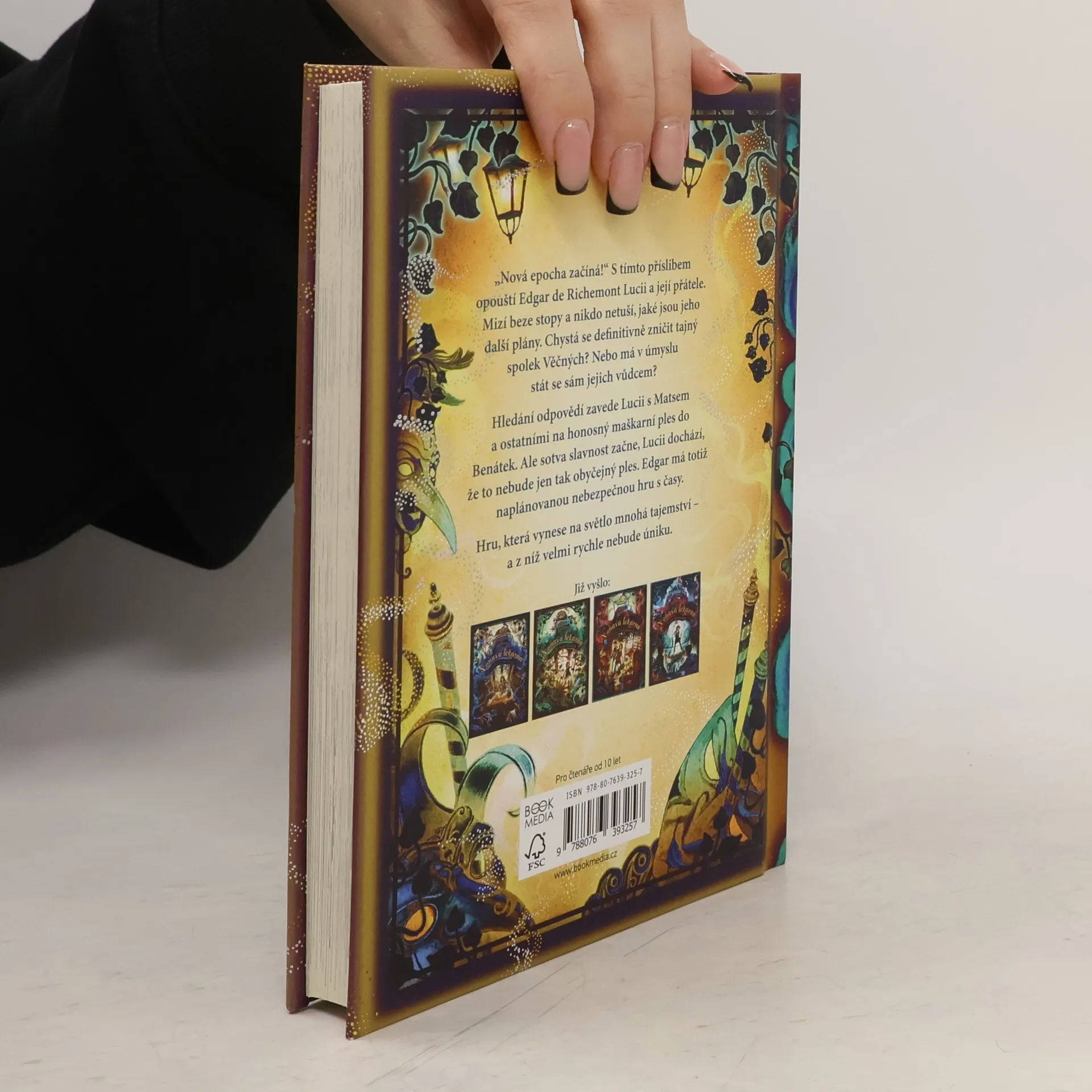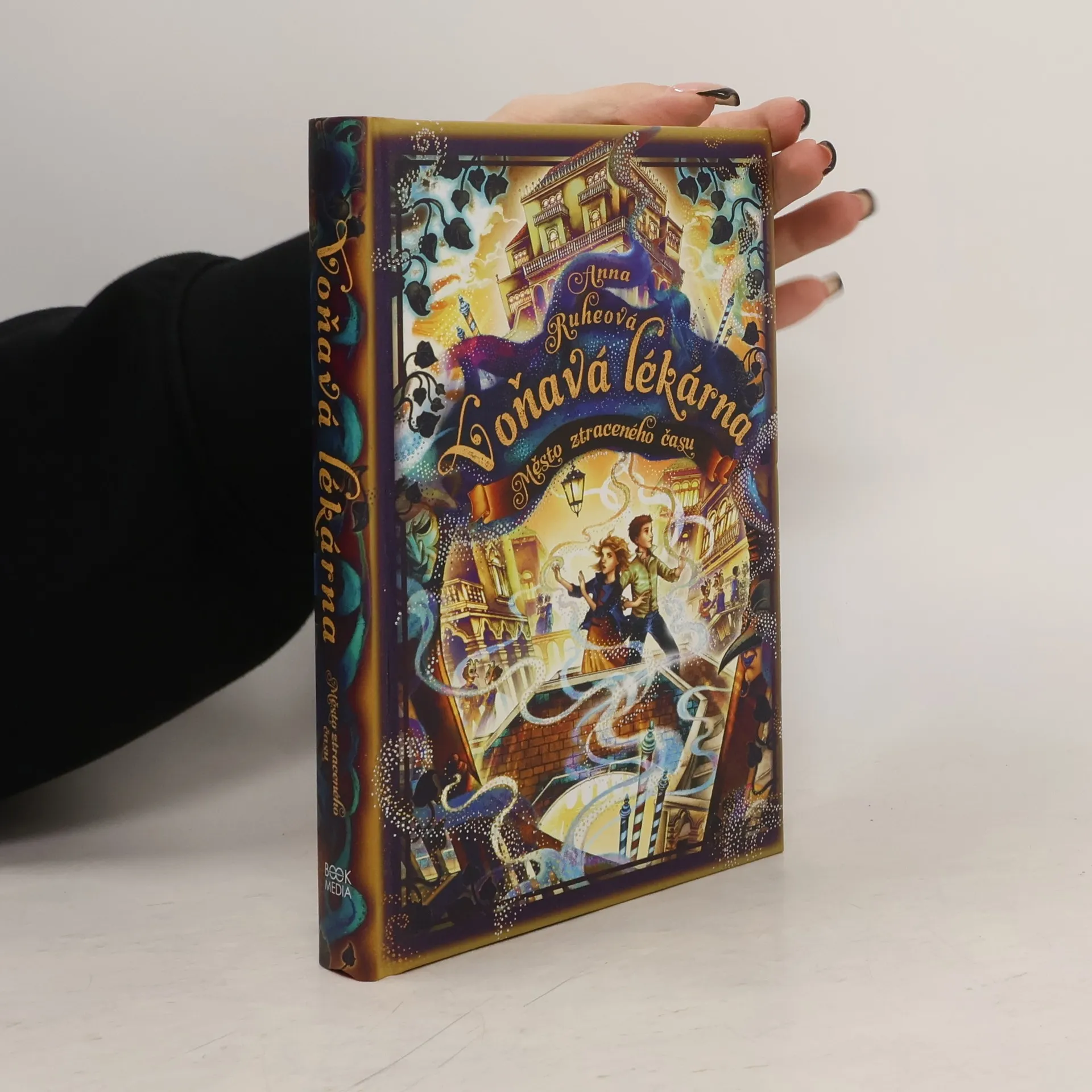 V pátém díle Voňavé lékárny s názvem Město ztraceného času se vracíme k Lucii a jejím přátelům ve chvíli, kdy se zoufale snaží najít Edgara. Ten s příslibem příchodu nové epochy zmizel beze stopy a zanechal tak Lucii s ostatními v nejistotě: chce zničit Věčné, nebo se touží sám stát jejich vůdcem? Pátrání skupinu zavede na honosný maškarní ples do Benátek, který se velmi rychle změní v nebezpečnou past. Tajemství vyplouvají na povrch, hra s časem začíná a cesta zpět se rychle uzavírá.