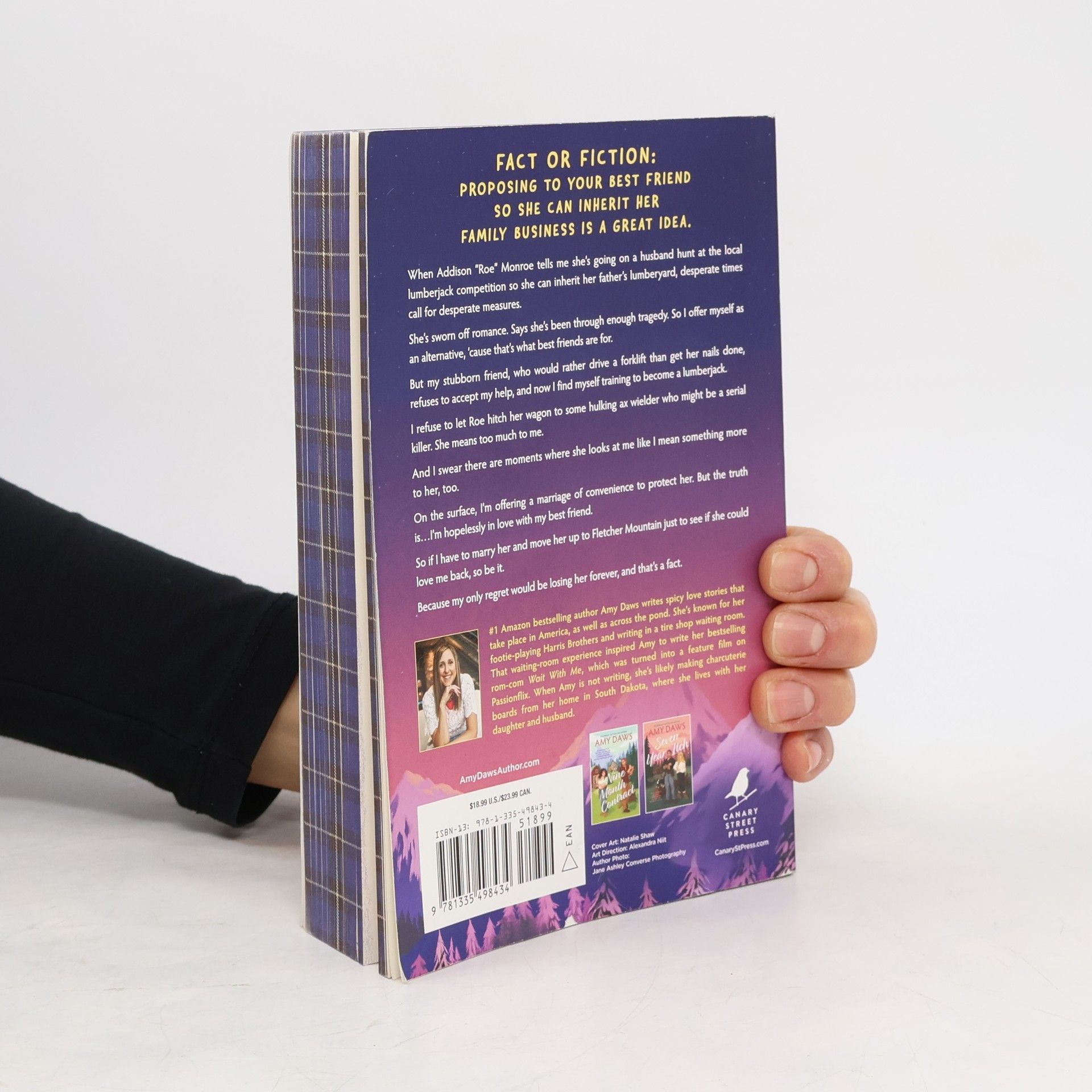 Fact or fiction: becoming a lumberjack and marrying your best friend so she can inherit her family business is a great idea. When Addison “Roe” Monroe tells me she’s going on a husband hunt at the local lumberjack competition so she can inherit her father’s lumberyard, I think she has finally lost her mind. But my stubborn friend, who would rather drive a forklift than get her nails done, refused my first marriage offer. And since I can’t stomach watching Roe hitch her wagon to some hulking ax wielder who might be a serial killer, I decide that desperate times require desperate measures. Call me Lumberjack Luke. I’ll do whatever it takes to get her to accept my proposal because she’s more than just a friend. And the way she looks back at me? I think she knows it. On the surface, I’m offering a marriage of convenience to protect her. But the truth is…I’m hopelessly in love with my best friend. Marrying her and moving her up to Fletcher Mountain might mean I’ve lost my mind too, but so be it. Because the only thing I would regret more, is never trying. And that’s a fact.