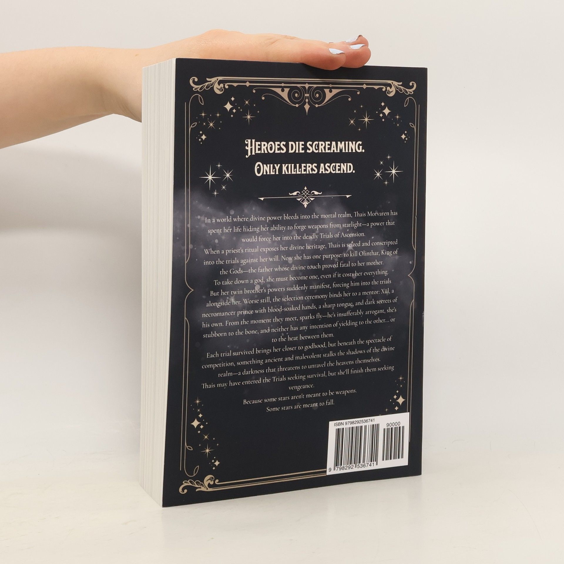 In a world where divine power seeps into the mortal realm, Thais Morvaren, a fisherman's daughter, secretly wields the ability to forge weapons from starlight. This hidden talent would compel her to enter the perilous Trials of Ascension. However, when a priest's ritual reveals her divine lineage, she is forcibly conscripted into the trials. Trapped in a competition she never desired, Thais channels her fear into a singular purpose: to kill Olinthar, the King of the Gods, whose divine touch led to her mother's death. To achieve this, she must ascend to godhood, even at great personal cost. Complicating matters, she is bound to a mentor, Xül, a necromancer prince with a dark past and a sharp wit. Their initial encounters are fraught with tension, as both are headstrong and unwilling to yield to one another or the undeniable chemistry between them. As she navigates the trials, each challenge brings her closer to her goal, but an ancient malevolence lurks in the shadows of the divine realm, threatening to disrupt everything. Forced into the Trials for survival, Thais ultimately seeks vengeance, and the price of achieving godhood continues to rise. Some stars are not meant to be weapons; some are destined to fall.