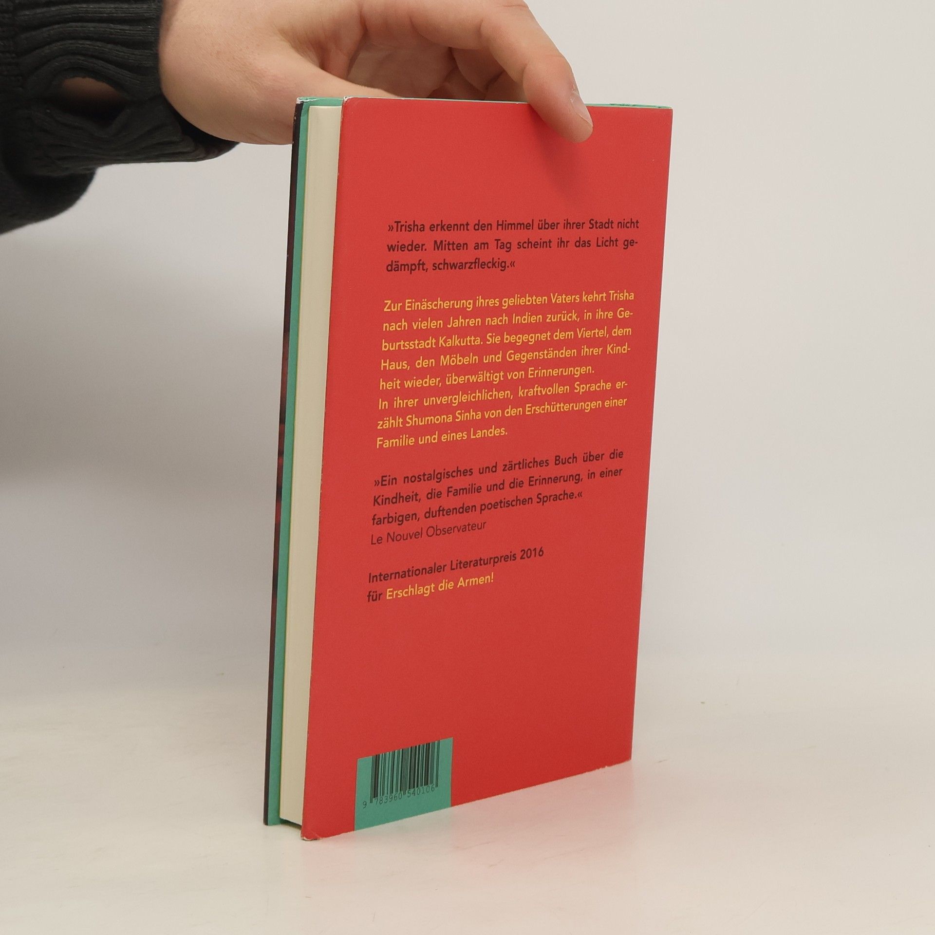 In ihrer unnachahmlich poetischen Sprache erzählt Sinha von einer verlorenen Kindheit in Indien, zwischen gestern und heute, zwischen der Familien- und der politischen Geschichte. Nach vielen Jahren in Frankreich kehrt Trisha anlässlich der Einäscherung ihres geliebten Vaters zurück in ihre Geburtsstadt Kalkutta. Im verlassenen Haus der Familie, in dem sie aufgewachsen ist, schicken die Möbel und vertrauten Gegenstände aus alten Tagen ihre Gedanken auf eine Zeitreise in die Vergangenheit. Da ist zum Beispiel die rote Steppdecke, die sie nicht nur an die Hausierer erinnert, die solche Decken anfertigten, sondern auch daran, wie sie eines Nachts ihren Vater dabei beobachtete, wie er in ebendieser aufgerollten Decke einen Revolver versteckte. Oder das kleine Fläschchen mit Hibiskusöl, mit dem man ihrer Mutter Urmila die Kopfhaut massierte, wenn diese wieder einmal von schwerer Melancholie überwältigt wurde. Indem Trisha sich in die Kratzer und Risse dieser Objekte, der Möbel, des Hauses versenkt, ersteht die Vergangenheit mehrerer Generationen einer Familie wieder auf, und damit auch die kollektive, politische Vergangenheit Westbengalens – von der britischen Kolonialzeit bis zur jahrzehntelangen kommunistischen Regierung seit den späten 1970er Jahren.