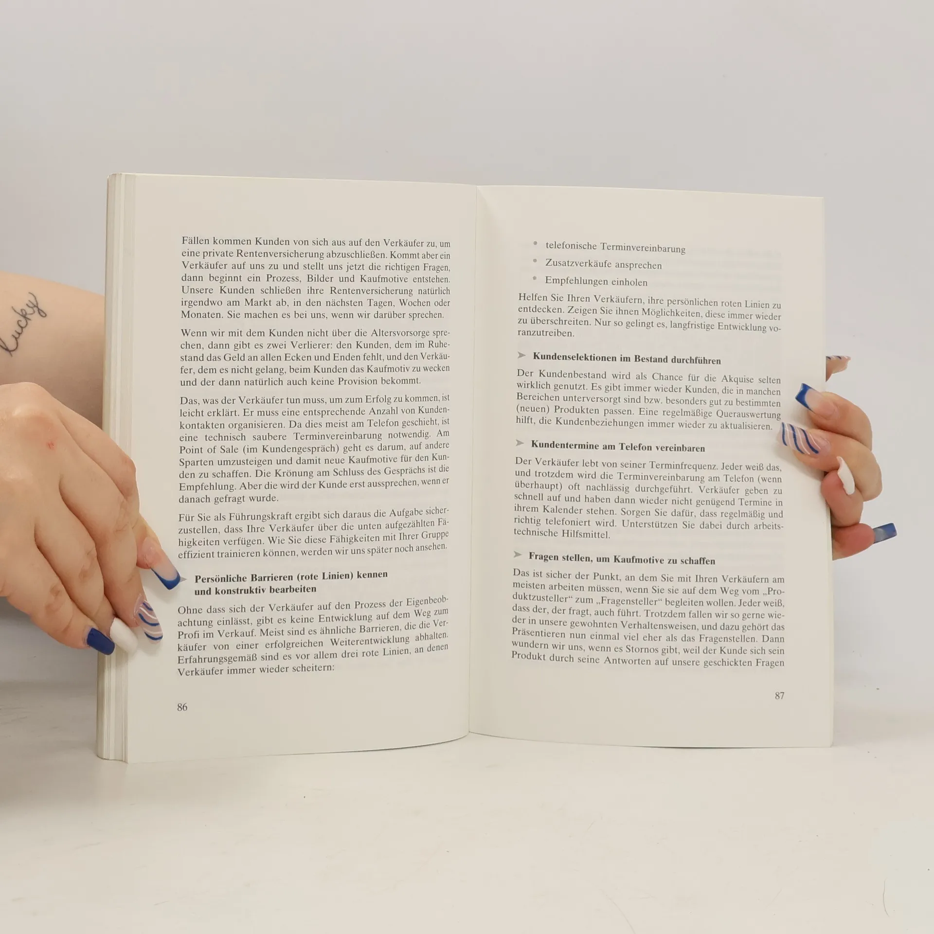 Ein typischer Tag in der Vertriebspraxis Motivation von außen allein genügt nicht Die roten Linien der Führungskräfte Auf die richtigen Arbeitstechniken kommt es an Das Zielgespräch in der Praxis Direkte Führung der Gruppe Eine Verkaufsregion startet durch - ein Beispiel für praktische Führungsarbeit Führung und Selbstführung