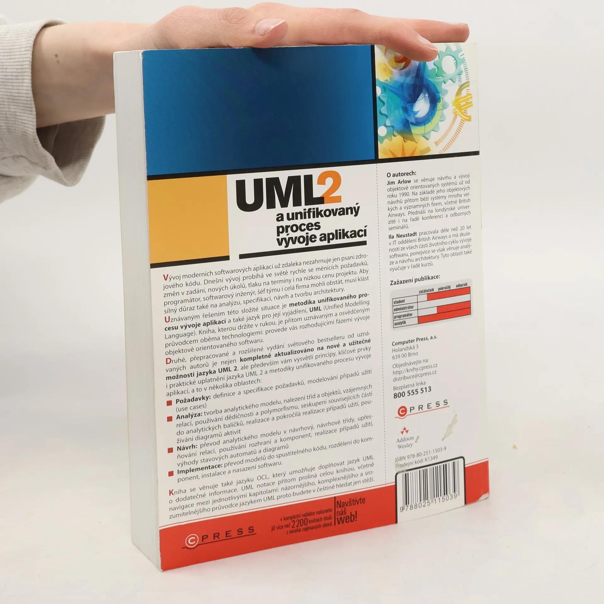 Vývoj moderních softwarových aplikací už zdaleka nezahrnuje jen psaní zdrojového kódu. Dnešní vývoj probíhá ve světě rychle se měnících požadavků, změn v zadání, nových úkolů, tlaku na termíny i na nízkou cenu projektu. Aby programátor, softwarový inženýr, šéf týmu i celá firma mohli obstát, musí klást silný důraz také na analýzu, specifikaci, návrh a tvorbu architektury. Uznávaným řešením této složité situace je metodika unifikovaného procesu vývoje aplikací a také jazyk pro její vyjádření, UML (Unified Modelling Language). Kniha, kterou držíte v rukou, je přitom uznávaným a osvědčeným průvodcem oběma technologiemi: provede vás rozhodujícími fázemi vývoje objektově orientovaného softwaru.