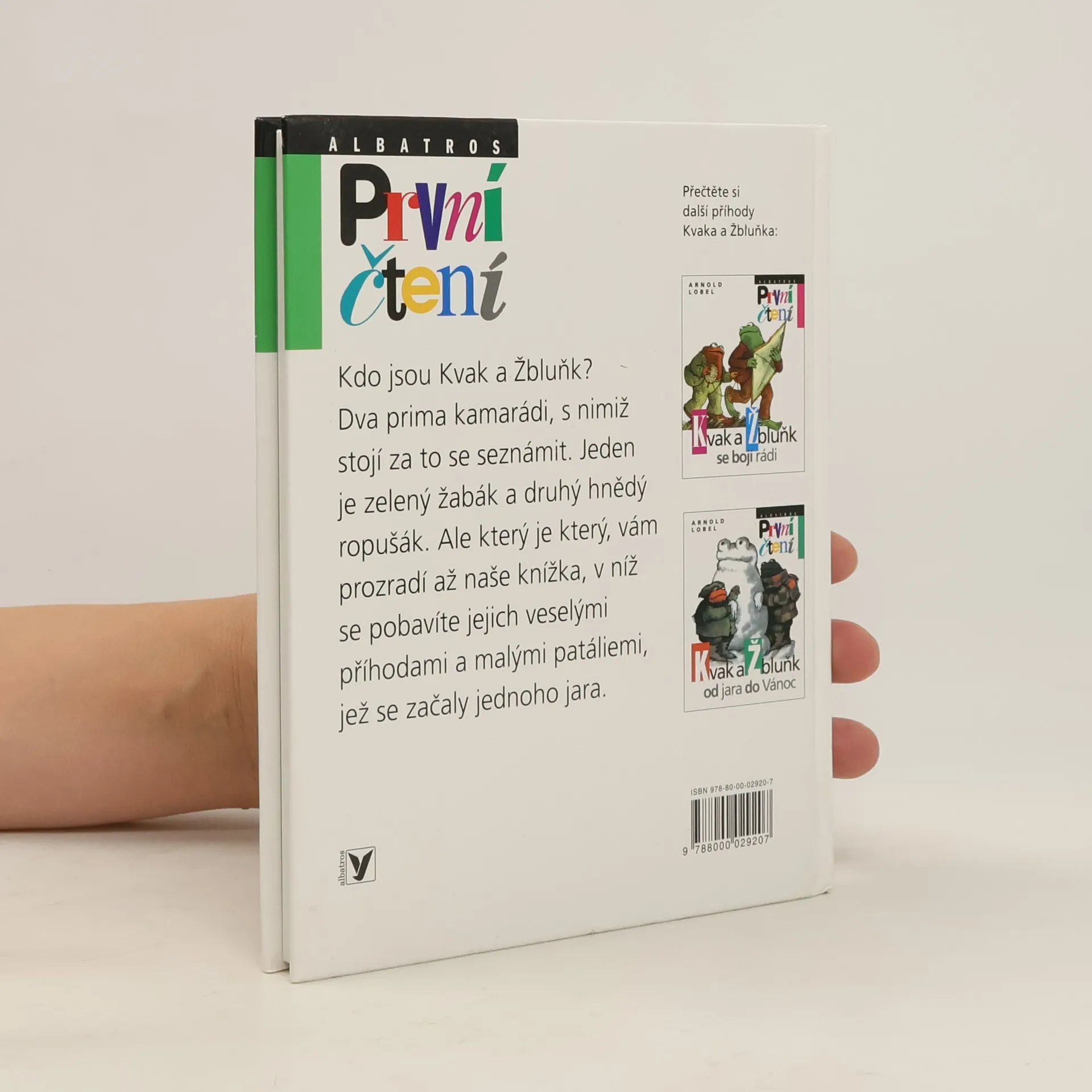 Úsměvné a hřejivé vyprávění o dvou kamarádech, zeleném žabákovi Kvakovi a hnědém ropušákovi Žbluňkovi potěšilo čtenáře nejen v zemi svého vzniku, ale i u nás (včetně dalších pokračování). Kdo by si tedy znovu rád nepřečetl o drobných příhodách a patáliích, které potkaly oba přátele, když se na jaře probudili ze zimního spánku. Třeba právě o tom, jak hledali ztracený knoflík, jak se koupali v řece, jak pěstovali květiny či jak statečně utíkali před draky a obry.