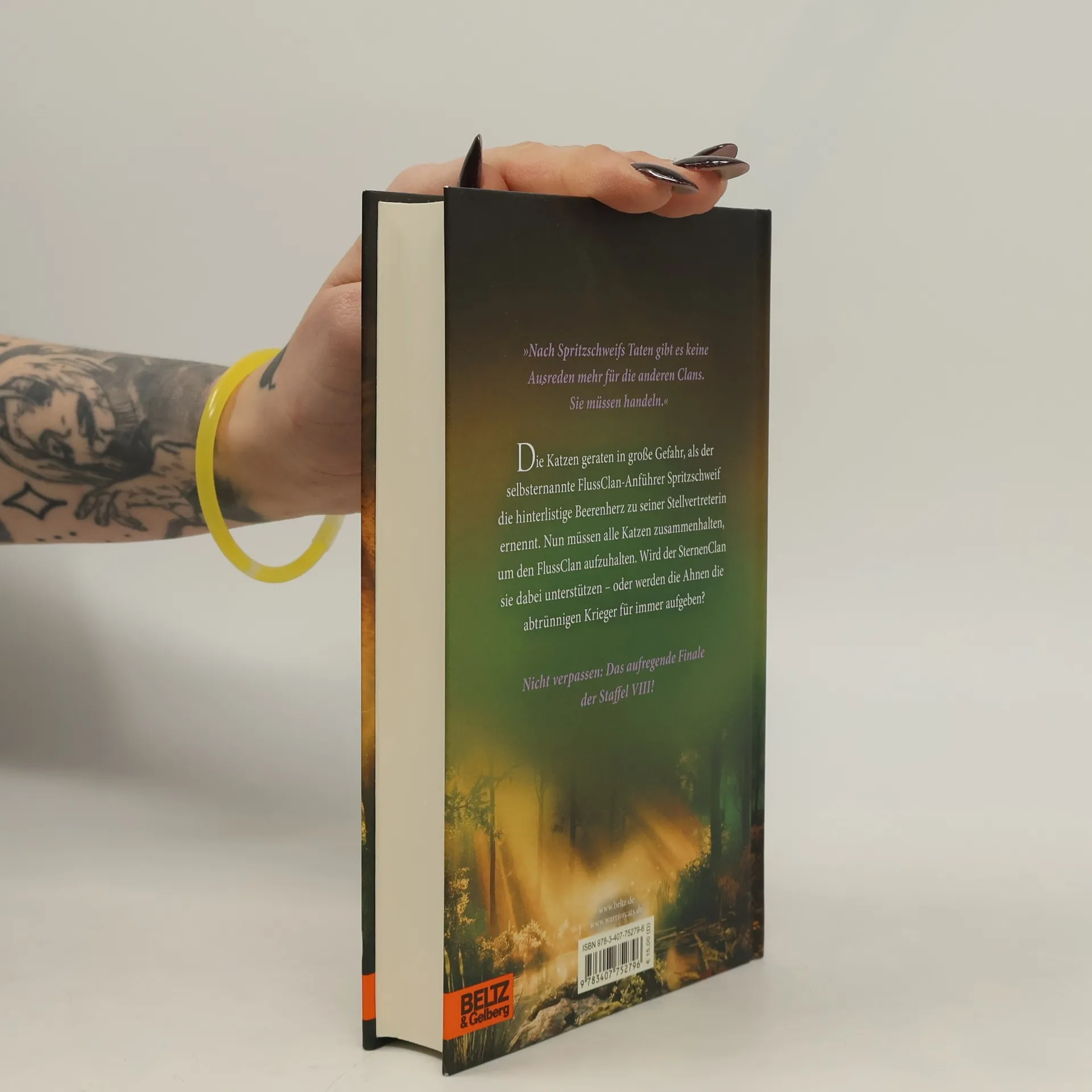 Heimlich beobachten Frostpfote, Nachtherz und Sonnenstrahl, wie Spritzschweif seinen Stellvertreter Hasenlicht tötet und die hinterlistige Beerenherz seinen Platz einnimmt. Nun müssen alle zusammenhalten, um den selbsternannten FlussClan-Anführer zu stoppen, der die Sicherheit der Clans bedroht. Wird der SternenClan sie dabei unterstützen oder geben die Ahnen den abtrünnigen FlussClan für immer auf? Das spannende Finale der Staffel VIII.
