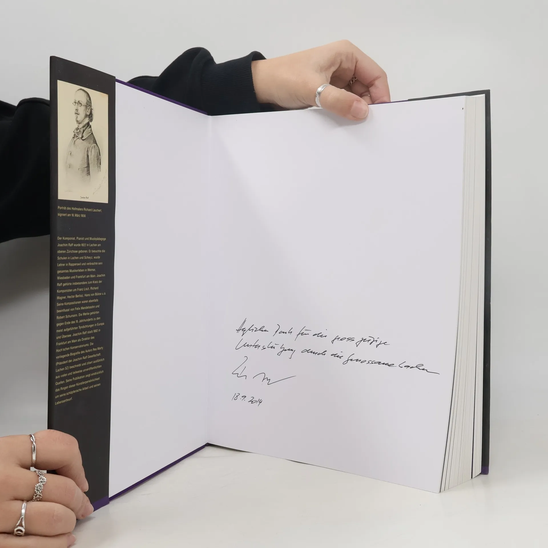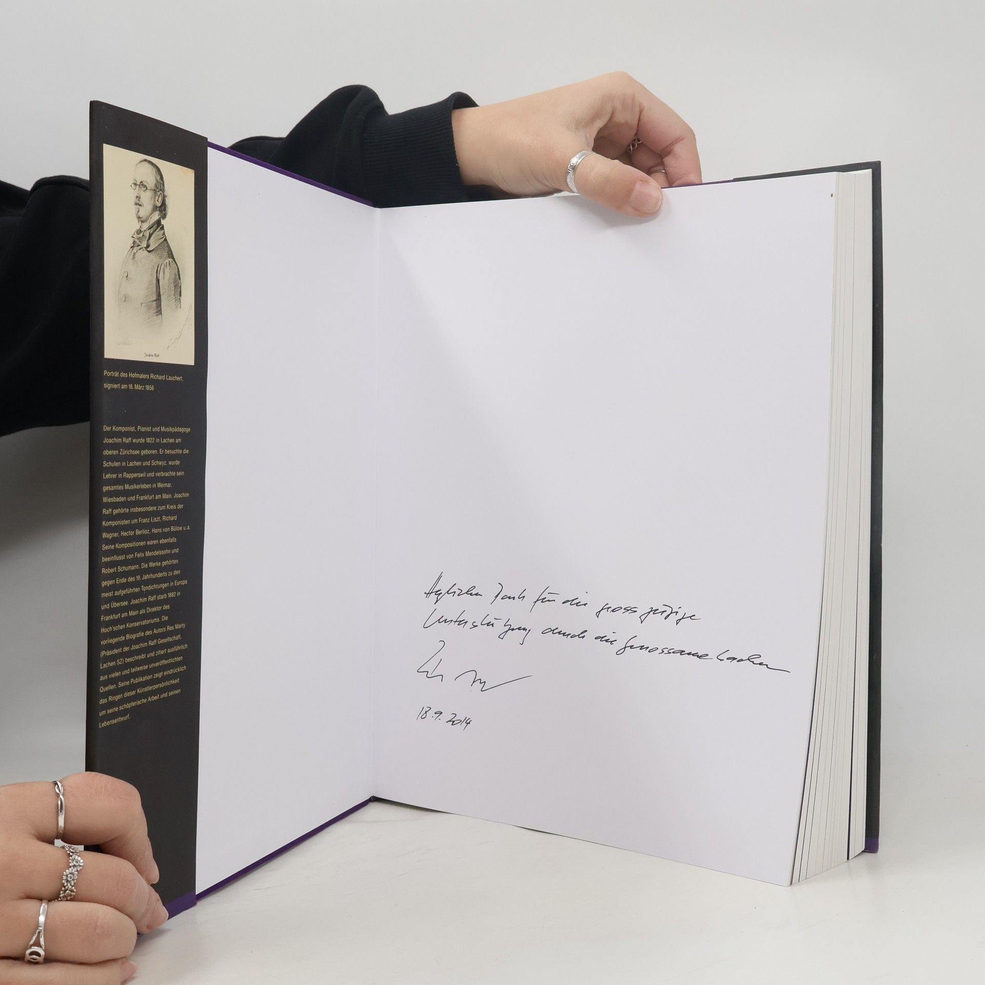 Zur späten Renaissance von Joachim Raff (1822–1882) trägt jetzt eine umfangreiche Biografie wesentlich bei.Seine Sinfonik beeindruckte einst Liszt, Tschaikowsky, Mahler und Richard Strauss, dennoch hielt die Erinnerung an ihn nur eine Miniatur wach, die Cavatina op. 85 Nr. 3 für Violine und Klavier. Sie trug den Namen des Komponisten in alle Welt hinaus und musste sich unzählige Bearbeitungen gefallen lassen. Als sein erfolgreichstes Stück versperrte sie den Blick auf das vielseitige Gesamtwerk mit 216 Opuszahlen fast ein Jahrhundert lang, wo Raff doch bei Lebzeiten zu den am häufigsten aufgeführten Komponisten deutsch-schweizerischer Herkunft gezählte hatte.Seit 1972 setzt sich die Joachim Raff-Gesellschaft in Lachen SZ, wo der Musiker als Sohn eines Deutschen und einer Schweizerin geboren wurde, für den besonders von Liszt und Hans von Bülow geförderten Komponisten, Pianisten, Bearbeiter und Musikpädagogen ein. Ihr Präsident Res Marty legt jetzt das Resultat mehrjähriger Recherchen in Archiven, Bibliotheken und Museen vor. Das bescheiden als Biografie bezeichnete, fast drei Kilos schwere Buch ist weitaus mehr als eine solche. Es gleicht einer gewichtigen Kulturgeschichte der deutschen Romantik. Der Autor vereinigt unveröffentlichte Dokumente von Goethe, Mendelssohn Bartholdy, Liszt und Wagner bis zu Hans von Bülow, Richard Strauss und Ibsen mit einer stattlichen Zahl neuer Einsichten.Bezüglich Format, Bilderreichtum und Informationsdichte nur mit den Chopin, Liszt und Schumann gewidmeten «Lebenschroniken in Bildern und Dokumenten» von Ernst Burger und mit dem vierbändigen Werk über Ernest Bloch von Joseph Lewinski und Emmanuelle Dijon vergleichbar, stellt das 440 Seiten mächtige Buch innerhalb der Biografien von Schweizer Komponisten die umfangreichste Publikation dar. Der Berufsberater und Sänger Res Marty hat als musikforschender Quereinsteiger ein Standardwerk über Raff geschaffen.Es ist zu hoffen, dass die darin reproduzierten und klug kommentierten Empfehlungsschreiben und Rezensionen u. a. von Mendelssohn Bartholdy und Schumann zur längst fälligen Überwindung der Vorurteile renommierter Dirigenten und Konzertveranstalter beitragen werden. Mit programminspirierten Hauptwerken wie der 3. Sinfonie Im Walde, der 5. Sinfonie Lenore, dem auf Rachmaninow vorausweisenden Klavierkonzert c-Moll op. 185 oder den vier Orchestersuiten verdient es der raffiniert instrumentierende Mitarbeiter an Liszts sinfonischen Dichtungen, endlich wieder regelmässig aufgeführt zu werden.Die meisten unveröffentlichten Dokumente stammen aus der Bayerischen Staatsbibliothek München. Als leidenschaftlicher Forscher und Sammler steuerte Res Marty viele biografisch aufschlussreiche Briefe und weitere Trouvaillen bei.Res Marty, Joachim Raff. Leben und Werk, mit einem Beitrag von Bernhard Billeter.Bild auf dem Buchumschlag:Portrait des ersten Direktors des Hoch’schen Konservatoriums von Frankfurt: Joseph Joachim Raff, Heinrich Georg Michaelis, 1882, Öl auf Leinwand, ungerahmt. Das Porträt wurde bei der Recherche für diese Publikation im Archiv des Historischen Museums Frankfurt wiederentdeckt, identifiziert und wird in dieser Publikation erstmals veröffentlicht. (historisches museum frankfurt / Foto: Horst Ziegenfusz)