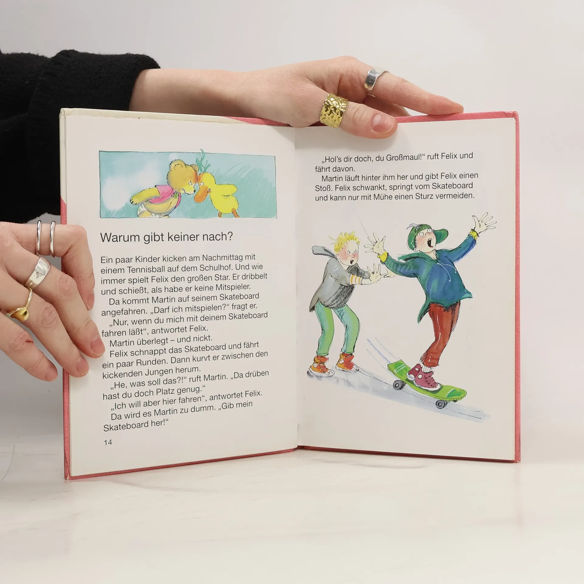 9 beispielhafte Geschichten aus dem Alltag: über den Streit um ein Spielzeug, Querelen zwischen dem Stärkeren und Schwächeren, über väterliche Autorität, Streit aus Eifersucht, Neid und Machtgehabe.