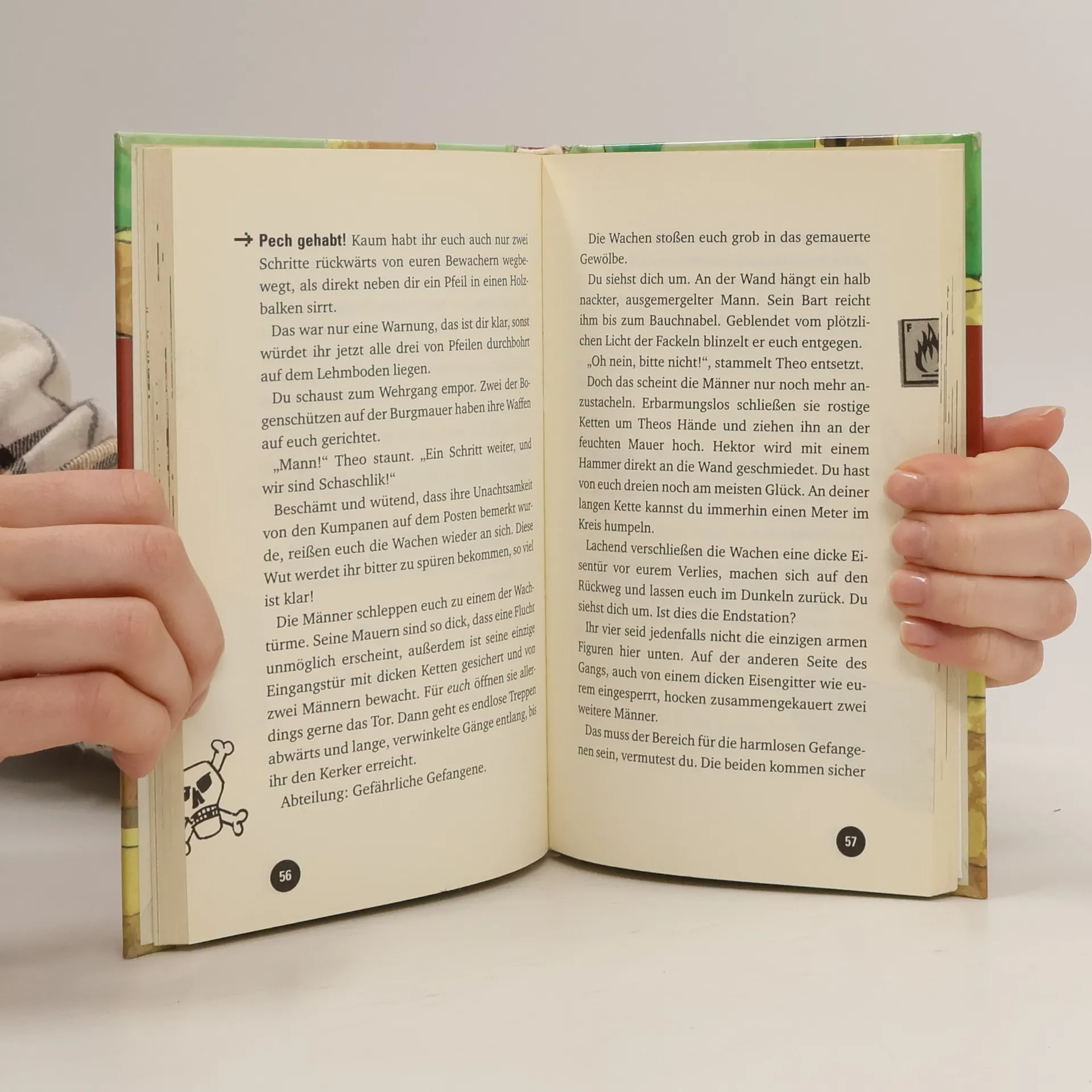Auf Zehenspitzen schleicht ihr durch den dunklen Gang und sucht nach der Geheimtür. Plötzlich bricht aus einem Verlies der schwarze Ritter hervor. Das Schwert drohend erhoben, kommt er langsam auf euch zu. Was nun? Theo ist dafür zu fliehen, Hektor will sich dem Feind entgegenstellen. Und du? In diesem Buch bist du der Held! Wie das Abenteuer bei den Rittern weitergeht, hängt von deiner Entscheidung ab. Denn du wählst den Weg!
