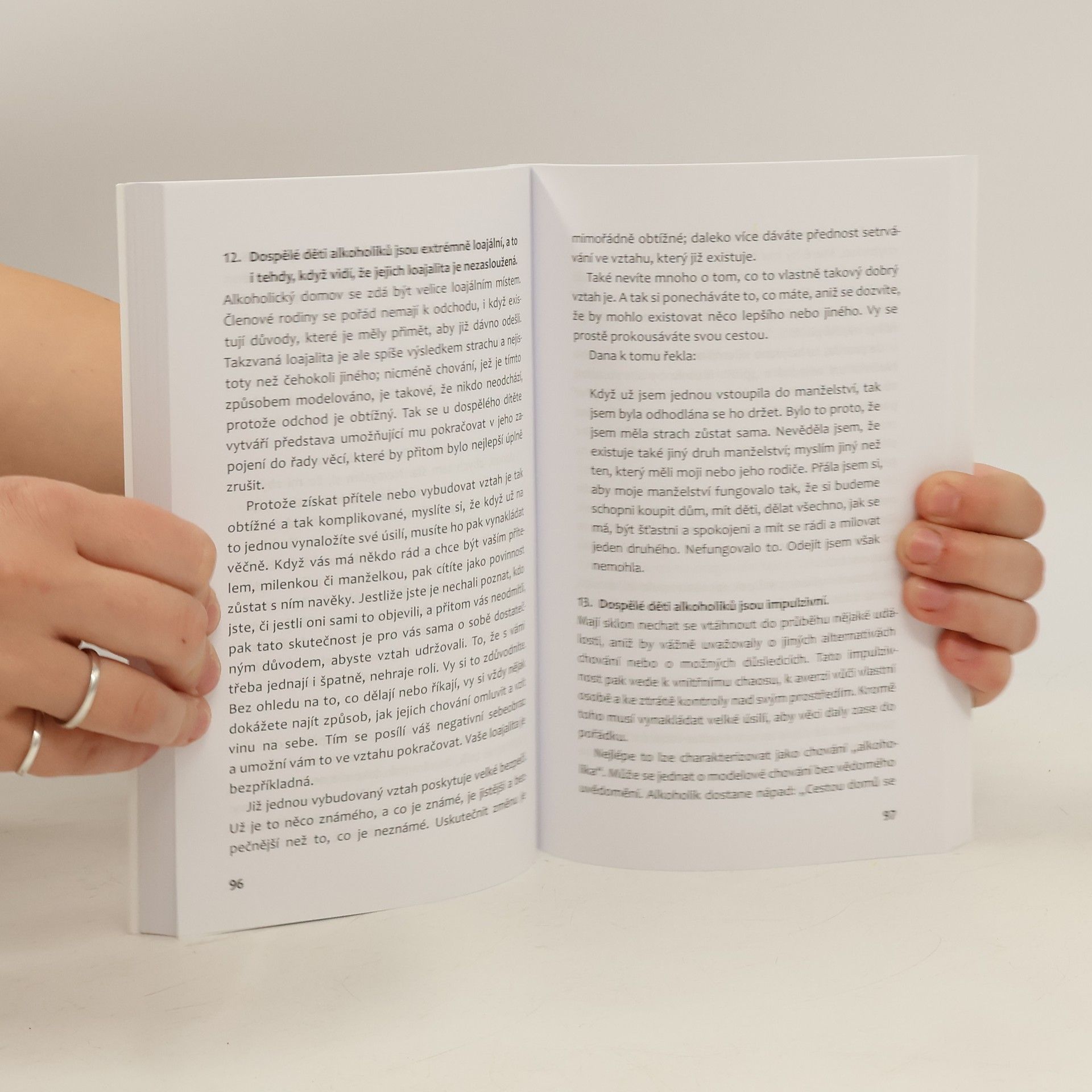 Když se v 80. letech minulého století začala autorka zabývat rodinami lidí závislých na alkoholu, vstupovala na neznámé území a trvalo ještě několik let, než se z její knihy Dospělé děti alkoholiků stal bestseller. Janet Woititz dospěla k určitým charakteristikám těchto lidí. V důsledku absence rodičovské vřelosti a jasně definovaných hranic v dětství si například nejsou jisti tím, jaké chování je normální, lžou v situacích, kdy to vůbec není potřeba, posuzují se bez slitování, mají problémy s důvěrnými vztahy, mají sklon buď k mimořádné zodpovědnosti, nebo k mimořádné nezodpovědnosti, jsou impulzivní. Knihu, která se tyto osoby snaží podpořit v jejich sebeúctě, lze využít i u dětí z jiných typů dysfunkčních rodin. Není přitom podstatné, kolik takovýmto „dětem“ vlastně je: Dané vzorce přetrvávají, dokud se z nich jejich nositelům nepodaří vyrůst. Tehdy také překonají začarovaný kruh a mohou svým dětem předat lepší poselství, než si z dětství odnesli oni sami.