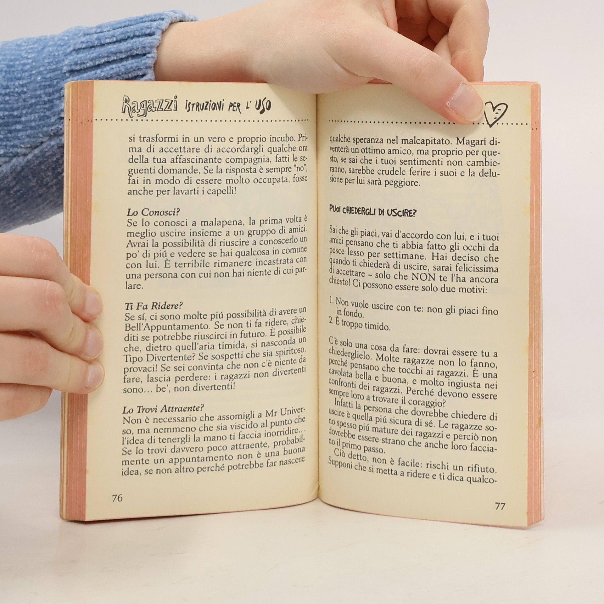 Il timido, il serio, il bullo, il brutto-ma-simpatico, il bello-ma-scemo, il rubacuori, lo sportivo, eccetera eccetera: ecco un campionario per tutti i gusti di quelle strane creature che sono i ragazzi. Dal primo incontro alla cotta senza più rimedi, dal corteggiamento agli addii, tutto quello che dovreste conoscere sul loro comportamento, che siano soli o in gruppo. Un manuale per sapere cosa fare - e cosa non fare - per avvicinarsi o allontanarsi dai ragazzi, senza lasciarci le penne, né il cuore...