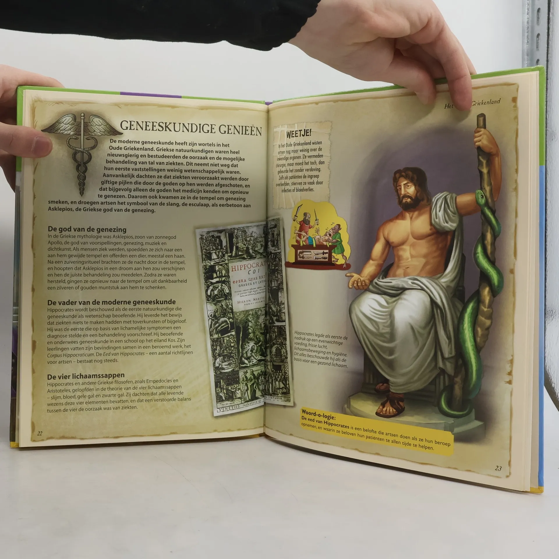 Allerlei informatie over het leven in het oude Griekenland. Verteld wordt over de Griekse goden, beroemde Grieken, bouwwerken en de Olympische Spelen. Met veel illustraties in kleur. Vanaf ca. 10 jaar.