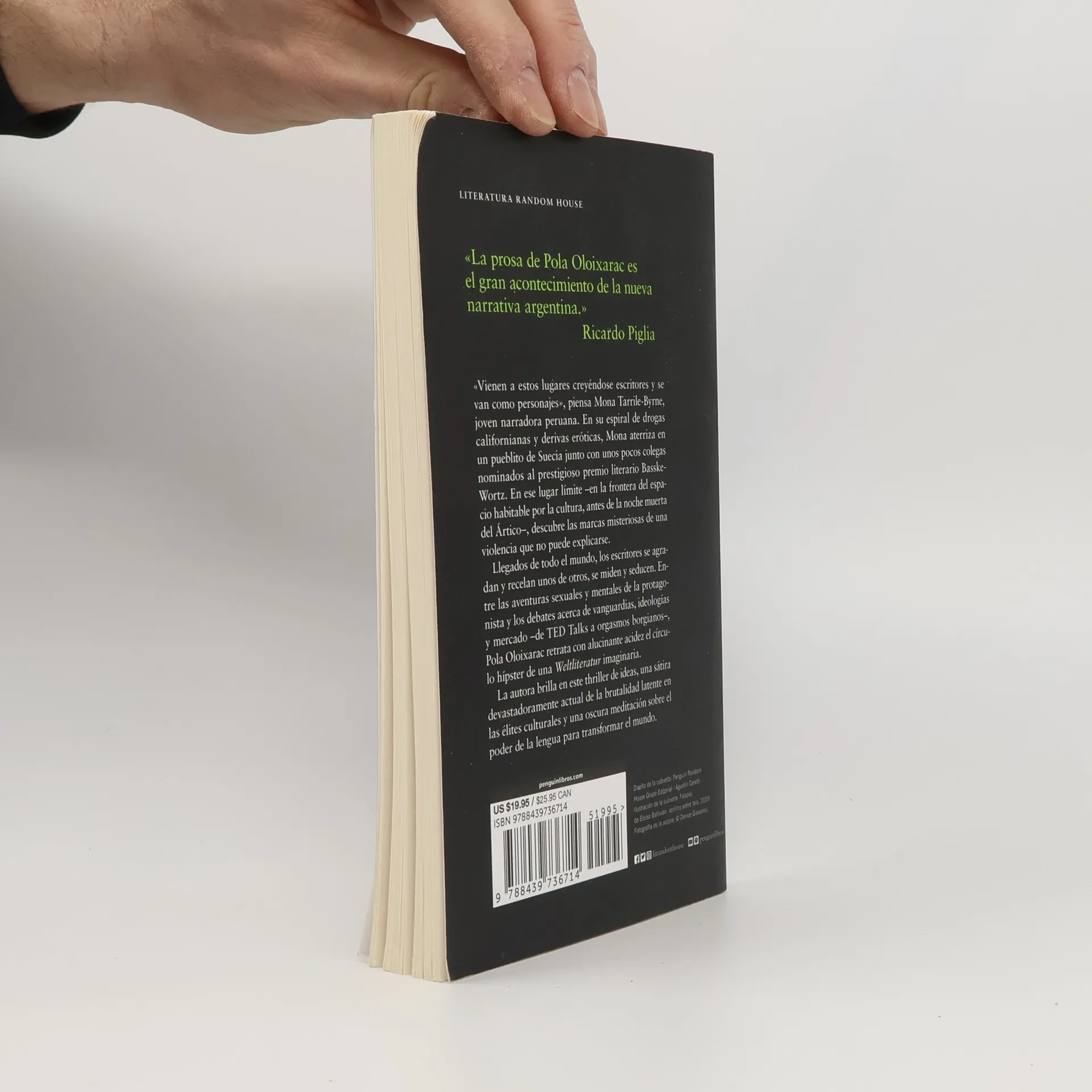 Novela de ideas y suspenso, un thriller literario donde la clave del crimen está escondida en el cuerpo de una escritora que compite por un premio. «La prosa de Pola Oloixarac es el gran acontecimiento de la nueva narrativa argentina.» Ricardo Piglia "Vienen a estos lugares creyéndose escritores y se van como personajes", piensa Mona Tarrile-Byrne, joven narradora peruana. En su espiral de drogas californianas y derivas eróticas, Mona aterriza en un pueblito de Suecia junto con unos pocos colegas nominados al prestigioso premio literario Basske-Wortz. En ese lugar límite -en la frontera del espacio habitable por la cultura, antes de la noche muerta del ártico-, descubre las marcas misteriosas de una violencia que no puede explicarse. Llegados de todo el mundo, los escritores se agradan y recelan, se miden y seducen. Entre las aventuras sexuales y mentales de la protagonista y los debates acerca de vanguardias, ideologías y mercado -de TED talks a orgasmos borgianos-, Pola Oloixarac retrata con alucinante acidez el círculo hípster de una weltliteratur imaginaria. La autora brilla en este thriller de ideas, una sátira devastadoramente actual de la brutalidad latente en las élites culturales y una oscura meditación sobre el poder de la lengua para transformar el mundo.