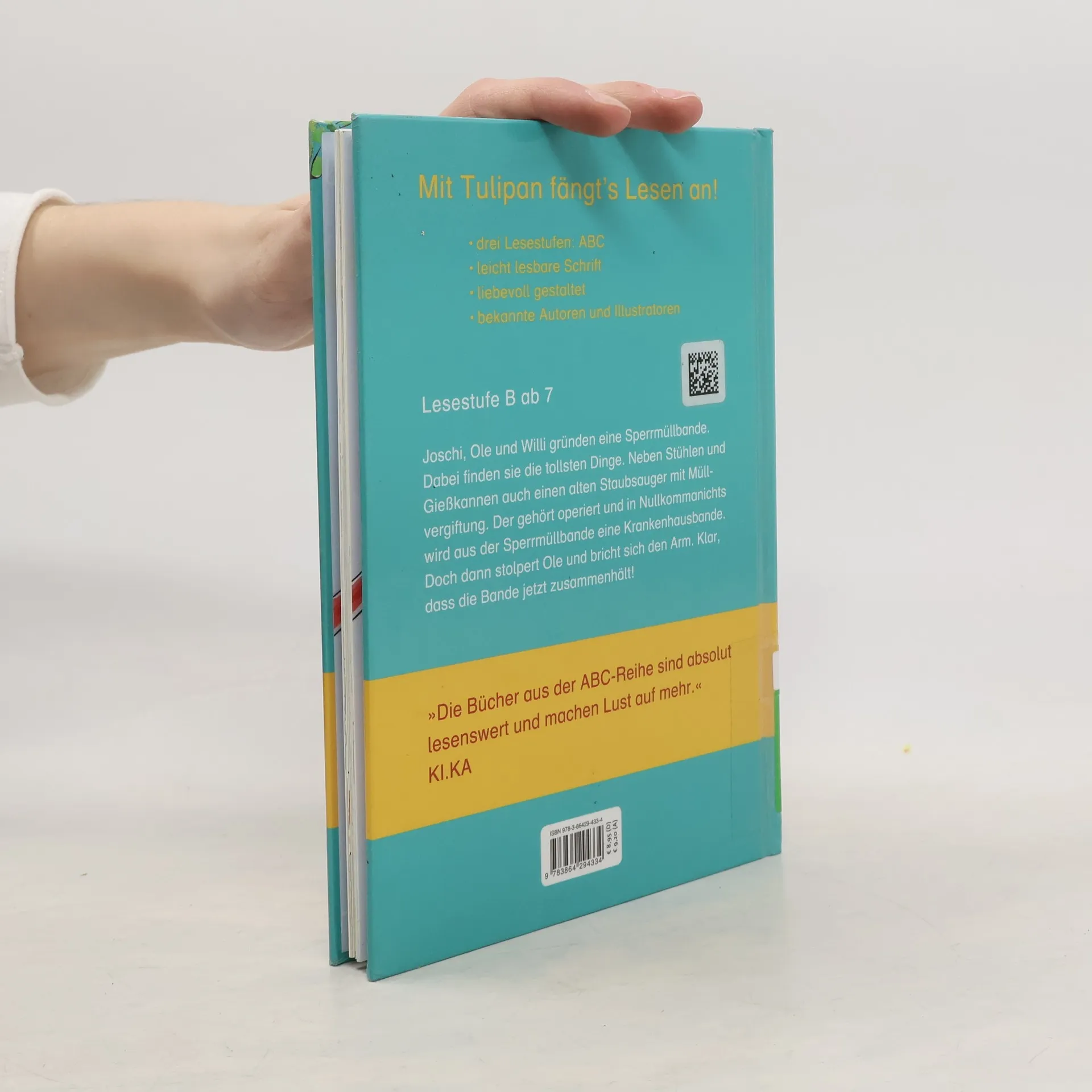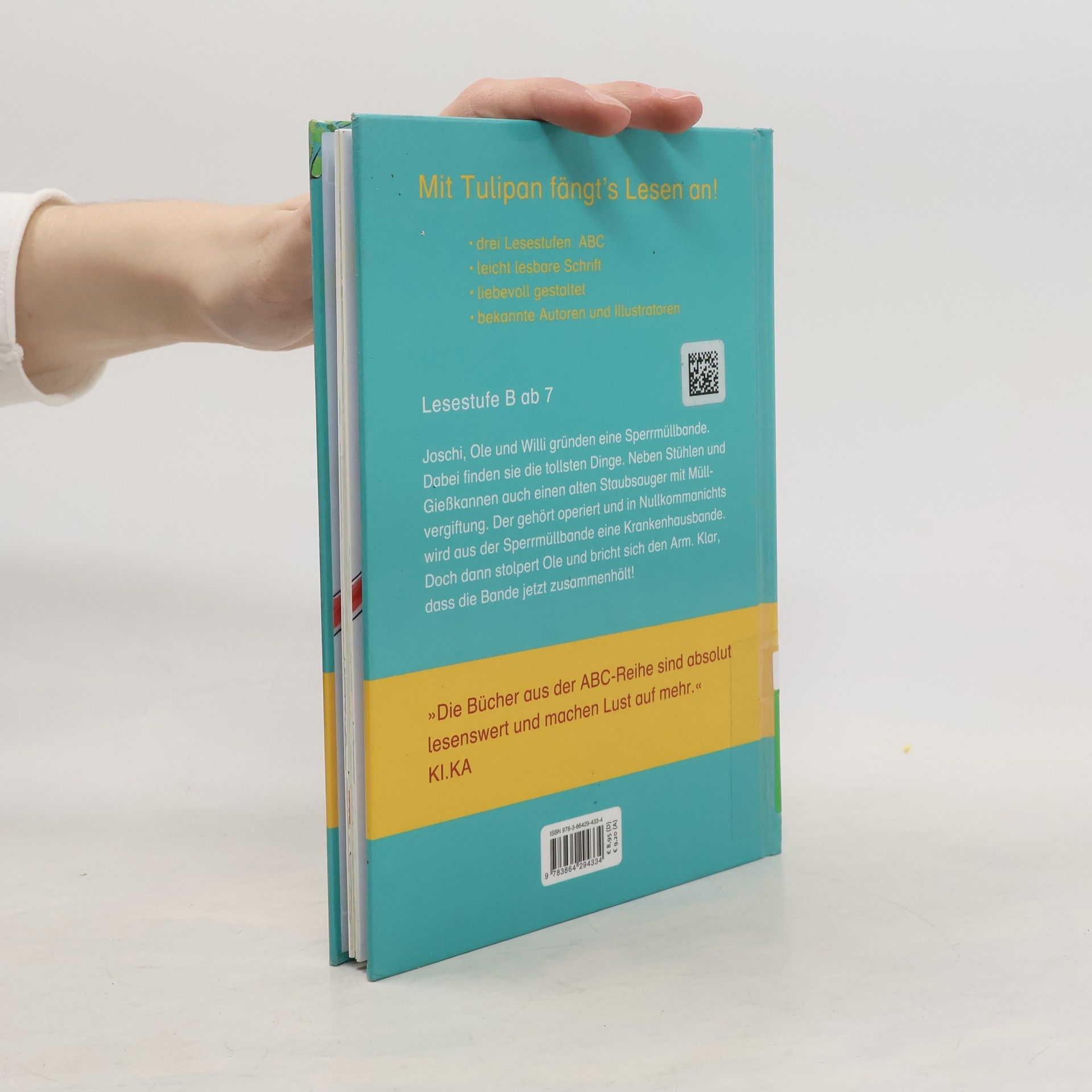 Joschi, Ole und Willi gründen eine Sperrmüllbande. Dabei findet man die tollsten Dinge. Neben Stühlen und Gießkannen auch einen alten Staubsauger mit Müllvergiftung. Der gehört operiert und in Nullkommanichts wird aus der Sperrmüllbande eine Krankenhausbande. Als Ole über das Staubsaugerkabel stolpert und sich den Arm bricht, ist klar, dass Joschi und Willi ihn ins Krankenhaus begleiten. Das ist ja wohl Ehrensache! Denn zusammen ist man stark und braucht vor nichts und niemandem Angst zu haben. Ausstattung: Durchgehend farbig illustriert