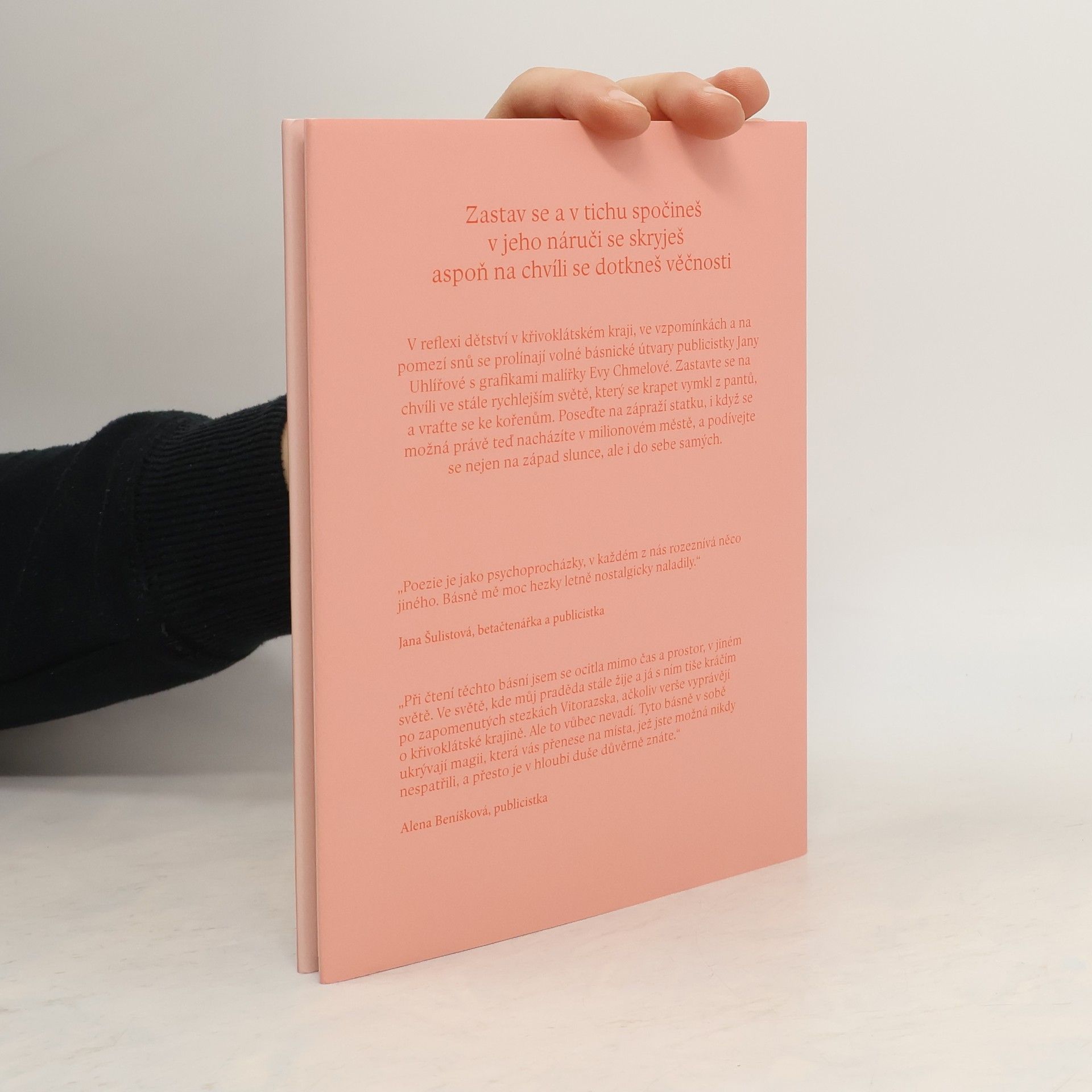 V reflexi dětství v křivoklátském kraji, ve vzpomínkách a na pomezí snů se prolínají volné básnické útvary publicistky Jany Uhlířové s grafikami malířky Evy Chmelové. Zastavte se na chvíli ve stále rychlejším světě, který se krapet vymkl z pantů, a vraťte se ke kořenům. Poseďte na zápraží statku, i když se možná právě teď nacházíte v milionovém městě, a podívejte se nejen na západ slunce, ale i do sebe samých.